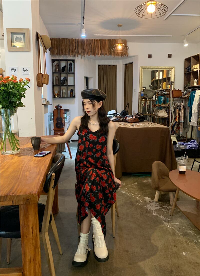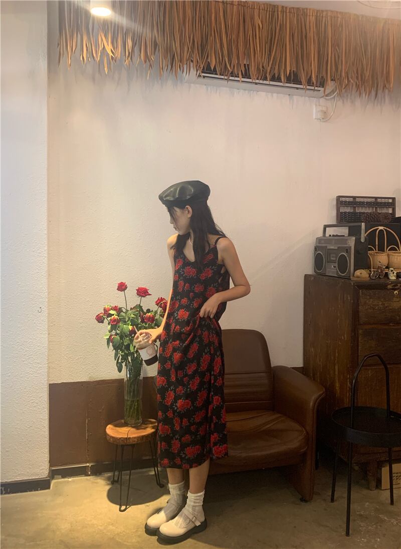 華やかに彩るバラのプリントが目を引くキャミワンピース。