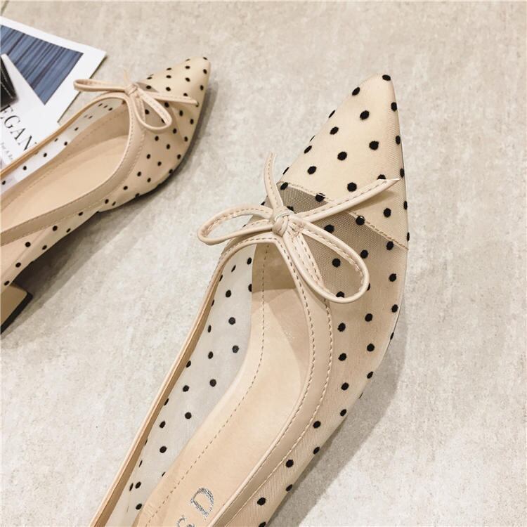 シューズ レディース パンプス 2カラー 22.5cm 23cm 23.5cm 24cm 24.5cm 25cm 25.5cm アイボリー ブラック カラバリ 靴 クツ レディースシューズ ポインテッドトゥ ドット柄 水玉模様 リボン メッシュ オーガンジー シアー 透け感 涼しげ 美脚 シンプル 大人可愛い きれいめ カジュアル エレガント 上品 ガーリー おしゃれ 存在感 10代 20代 30代 40代 50代 通勤 オフィス 通学 普段使い デート お出かけ 休日 旅行 韓国系 春 夏 送料無料