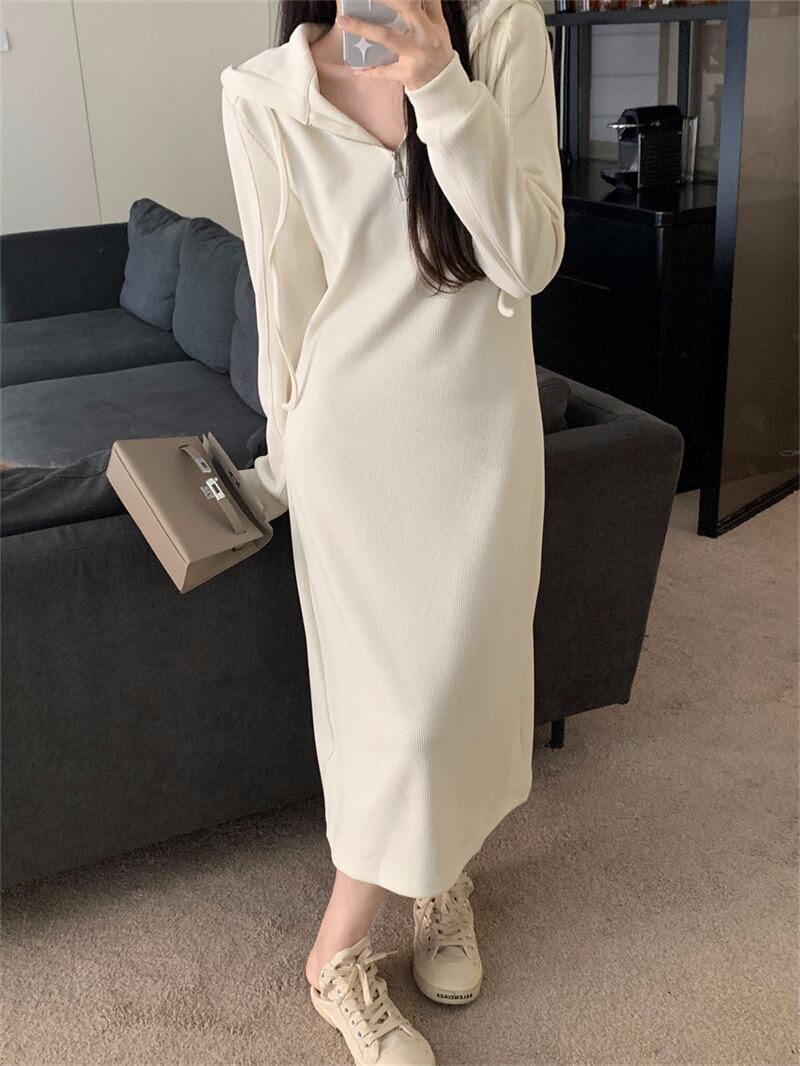ワンピース レディース パーカー フーディー スウェットワンピ ロング ロング丈 長袖 ハーフジップ ストレート ワイド フード付き ファスナー プルオーバー かわいい 大人可愛い シンプル カジュアル おしゃれ おとな ナチュラル こなれ感 ラフ ガーリー ルーズ リラックス 抜け感 存在感 無地 デート お出かけ 女子会 休日 アウトドア 散歩 M L XL 2XL 3XL 4XL 5XL 大きいサイズ ゆったり ゆる ホワイト アプリコット ブラック 10代 20代 30代 韓国 楽ちん 送料無料