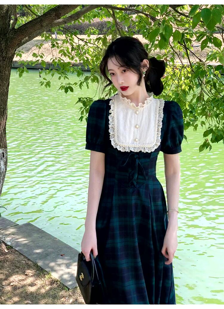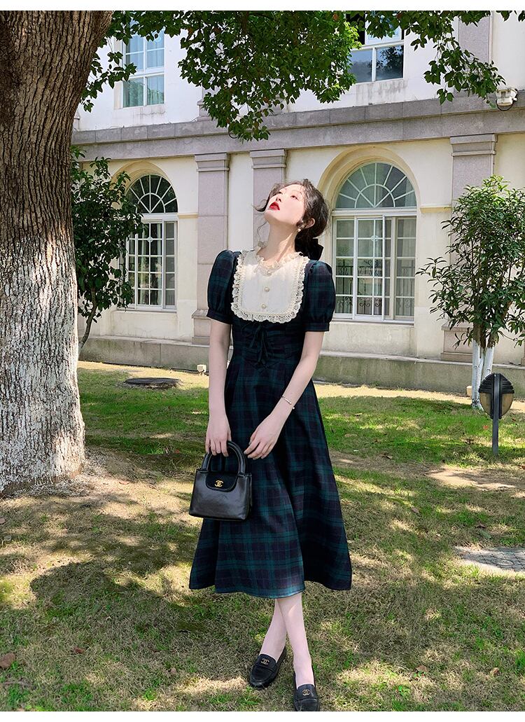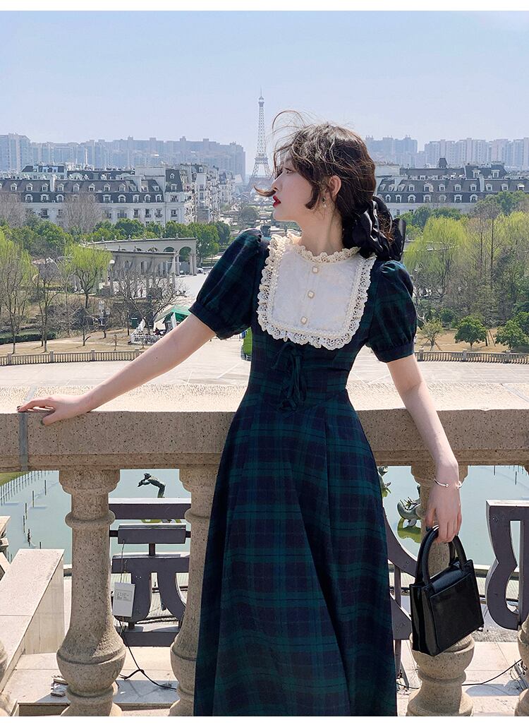 ワンピース レディース ロングワンピース ミモレ丈 ロング丈 半袖 ボリューム袖 パフスリーブ ラウンドネック Aライン 切り替え レース フリル リボン ウエストマーク パール かわいい 大人可愛い 上品 エレガント 清楚 フェミニン シック おしゃれ 綺麗 お嬢様 こなれ感 ラフ ラブリー キュート ガーリー アンティーク ロマンチック 抜け感 華やか クラシカル 存在感 主役級 チェック柄 デート お出かけ 女子会 パーティー イベント お呼ばれ S M L 春 夏 10代 20代 韓国 送料無料