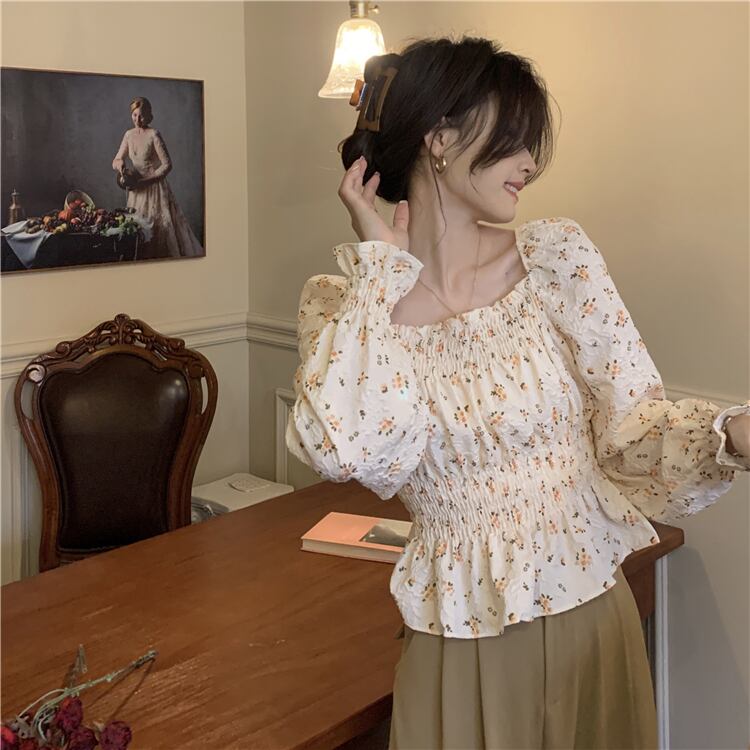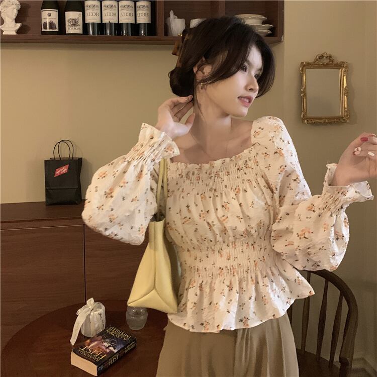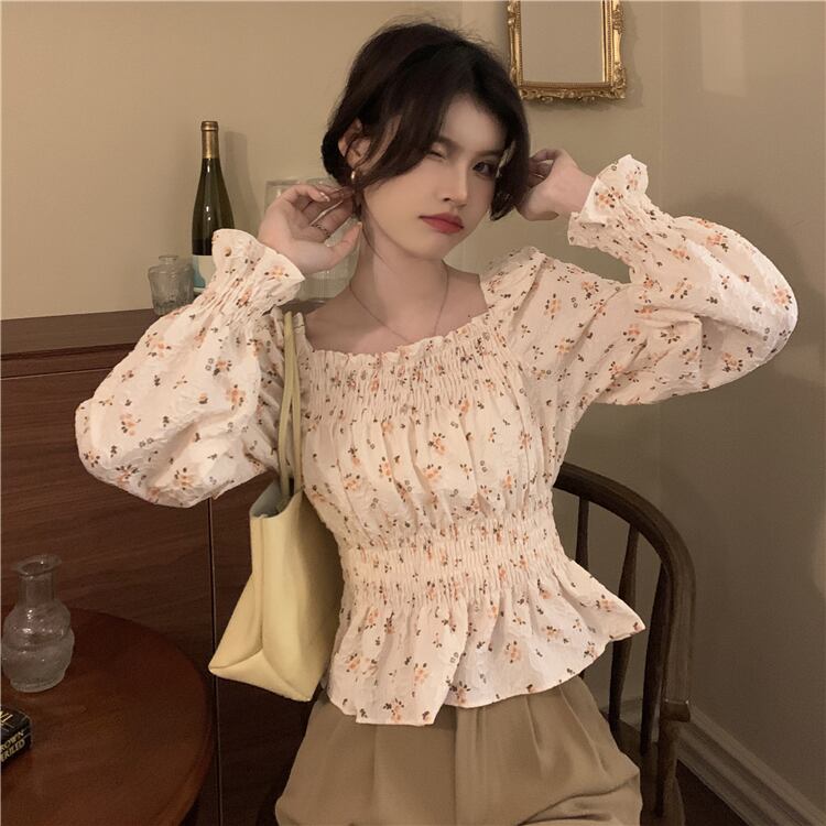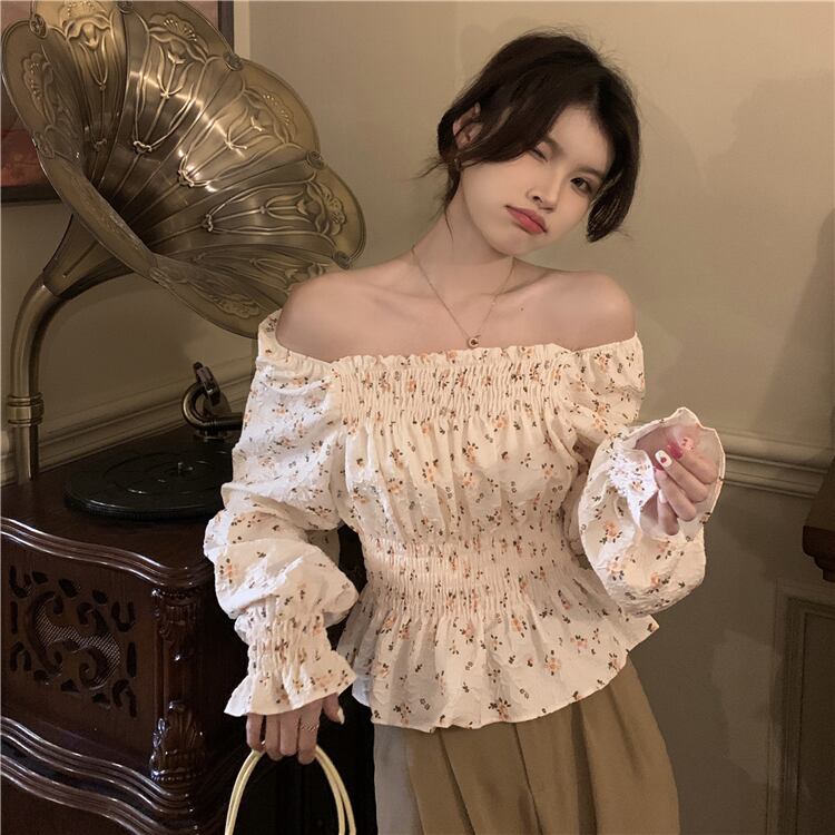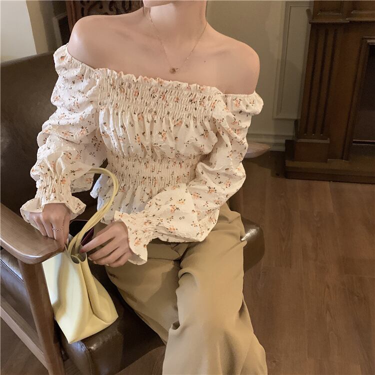 トップス レディース カットソー シャツ ブラウス ショート丈 長袖 トランペットスリーブ スクエアネック オフショルダー オフショル シャーリング プルオーバー 2way かわいい 大人可愛い カジュアル 清楚 フェミニン おしゃれ 綺麗 お嬢様 ナチュラル こなれ感 ラブリー キュート ガーリー 抜け感 花柄 小花柄 フラワー OL 学生 デート お出かけ 休日 散歩 カフェ巡り 街歩き フリーサイズ オレンジ グリーン 春 10代 20代 30代 韓国 韓国系 着回し 普段使い モテ 送料無料