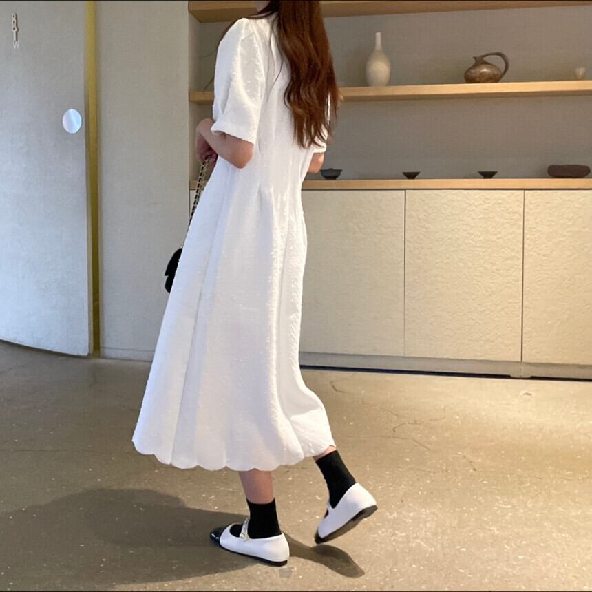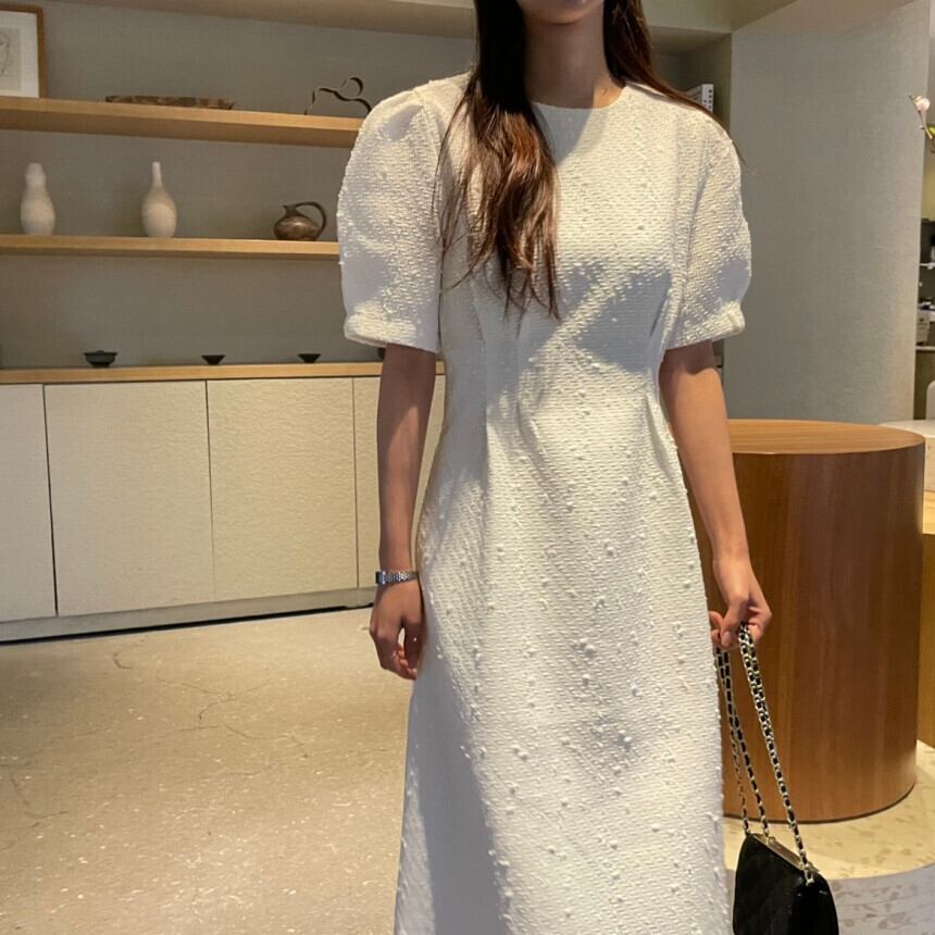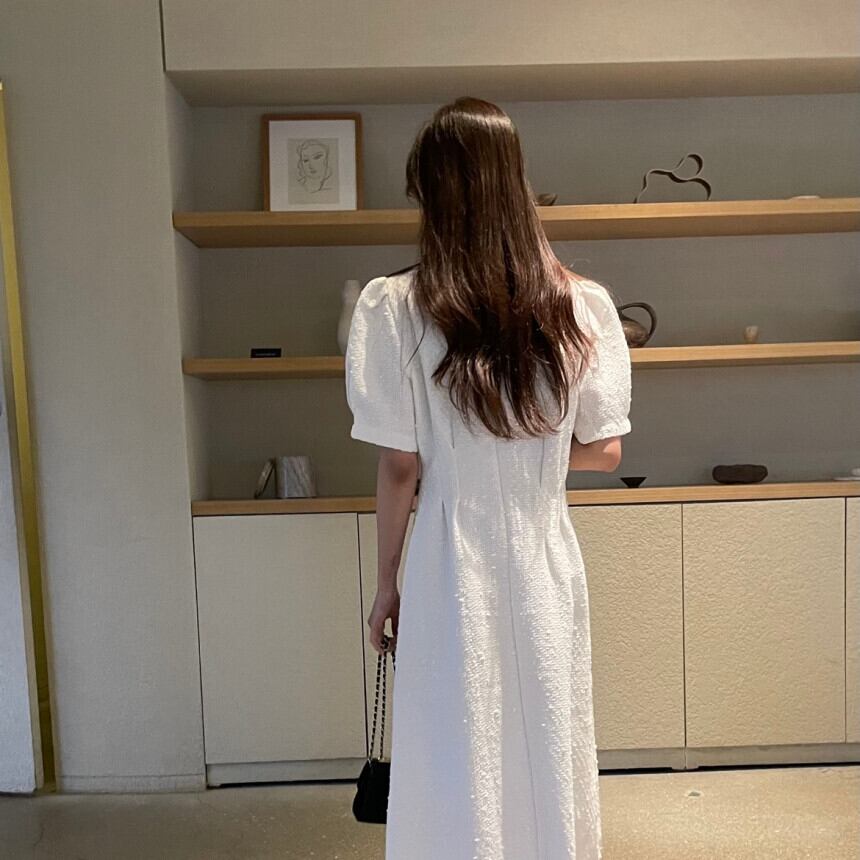 ワンピース レディース 2色 ミディアムワンピース 5分袖 パフスリーブ ラウンドネック スリム 細身 Iライン ハイウエスト かわいい 大人可愛い きれいめ シンプル カジュアル 上品 エレガント 清楚 おしゃれ 綺麗 おとな ナチュラル キュート ガーリー 華やか チェック柄 ツイード柄 デート お出かけ 女子会 パーティー イベント 美術館巡り アート鑑賞 カフェ巡り S M ホワイト パープル 春 夏 記念日 結婚式 二次会 20代 30代 40代 50代 ママ 韓国系 着回し モテ 送料無料