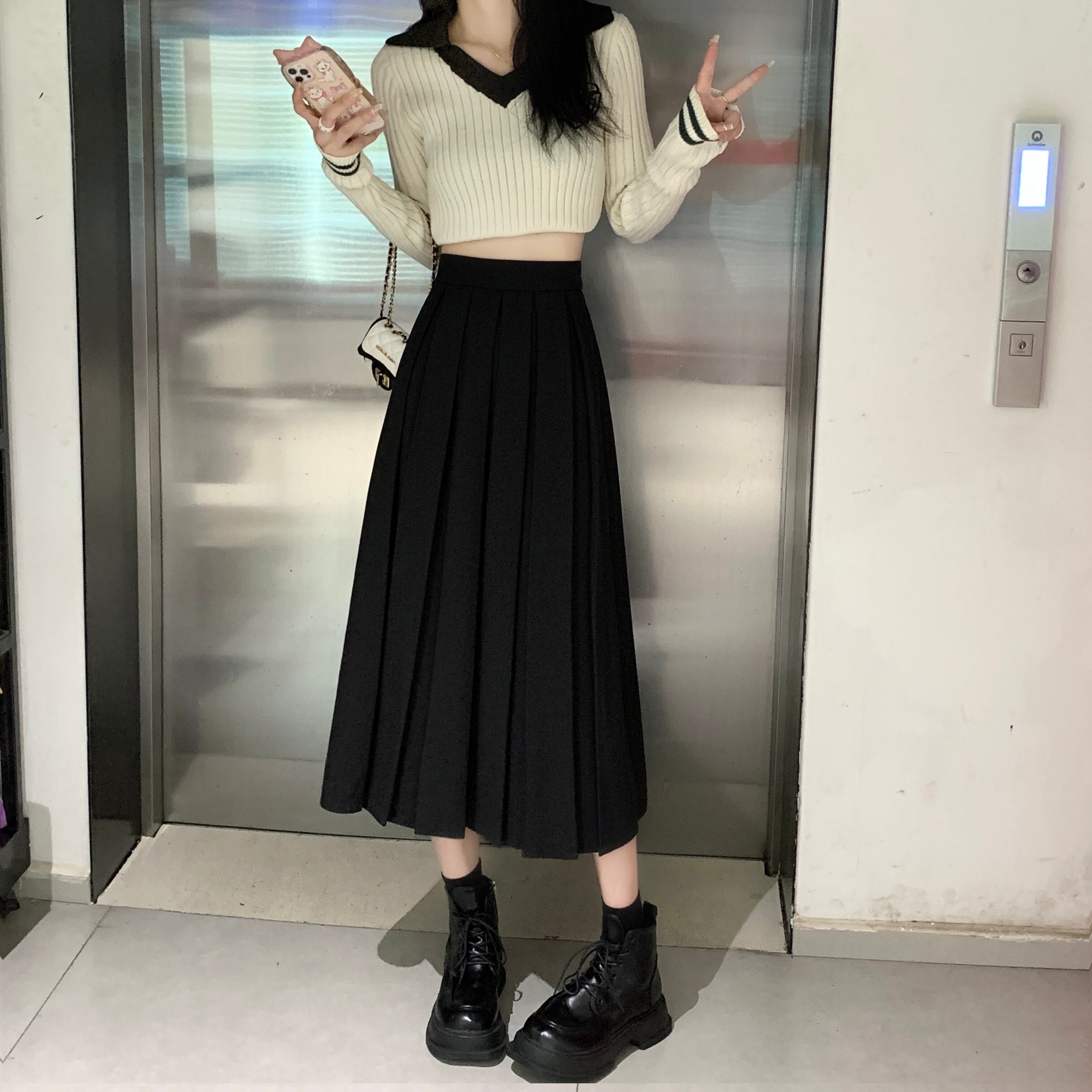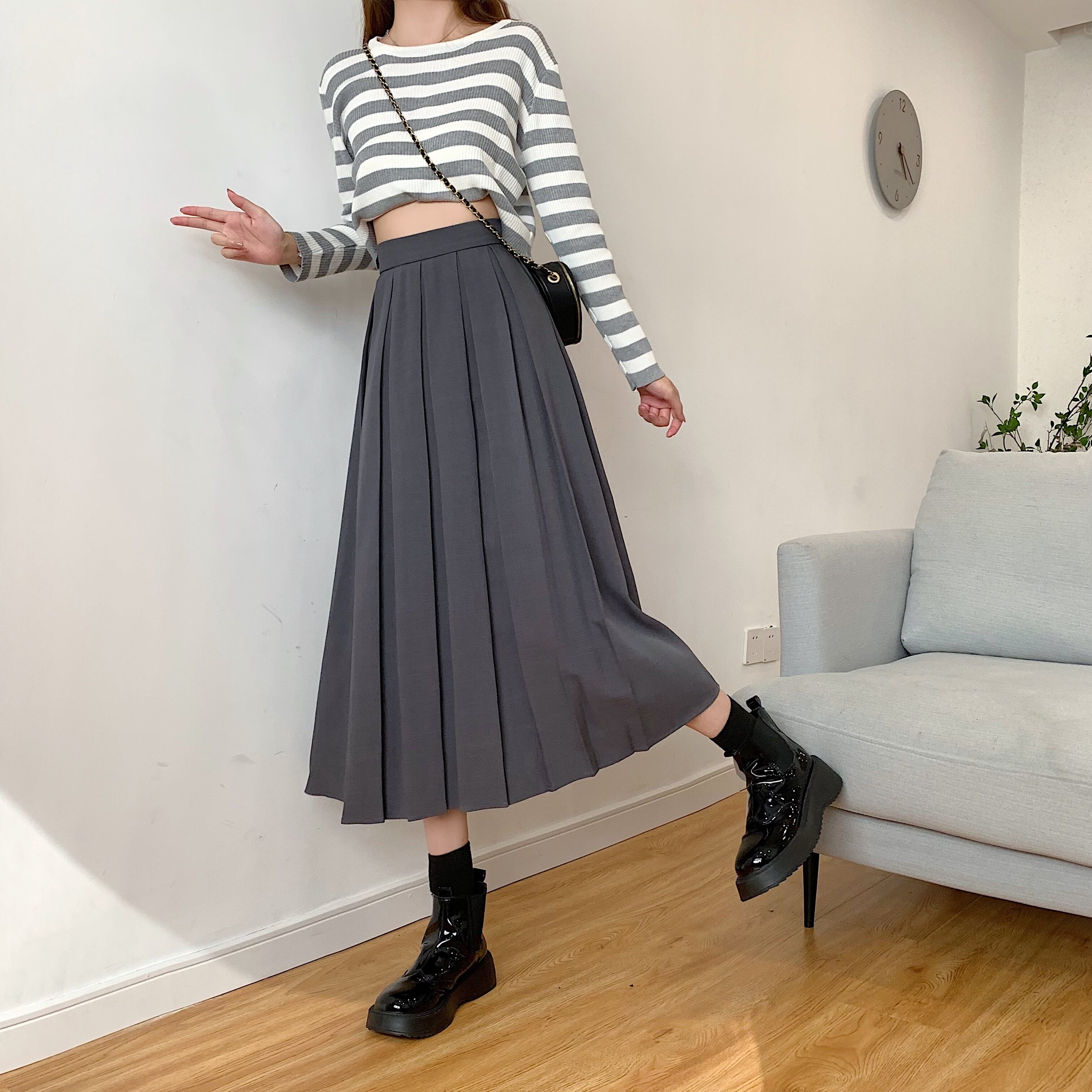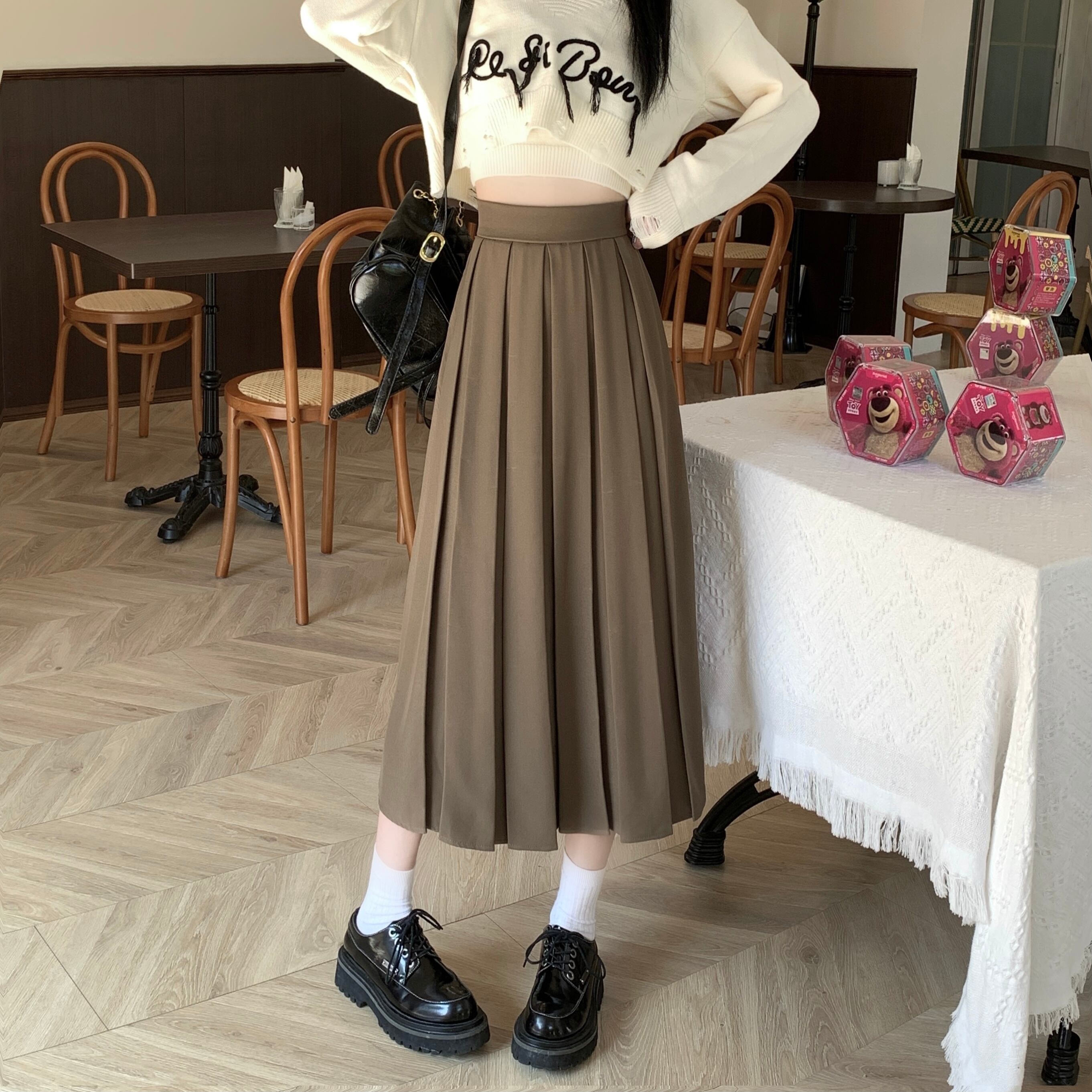 【着用レビュー】スカート レディース ロングスカート Aライン プリーツスカート ミドル丈 ミモレ丈 ハイウエスト かわいい 大人可愛い シンプル カジュアル おしゃれ 大人女子 ラブリー キュート ガーリー 抜け感 ナチュラル こなれ感 存在感 S M L XL アプリコット ブラック ライトブラウン ブルー ブラウン グレー 無地 春 10代 20代 30代 40代 OL 通勤 学生 通学 デート 散歩 お出かけ 女子会 着回し 普段使い 韓国系 コーデ スタイル 体型カバー モテ インスタ 送料無料