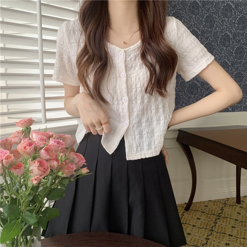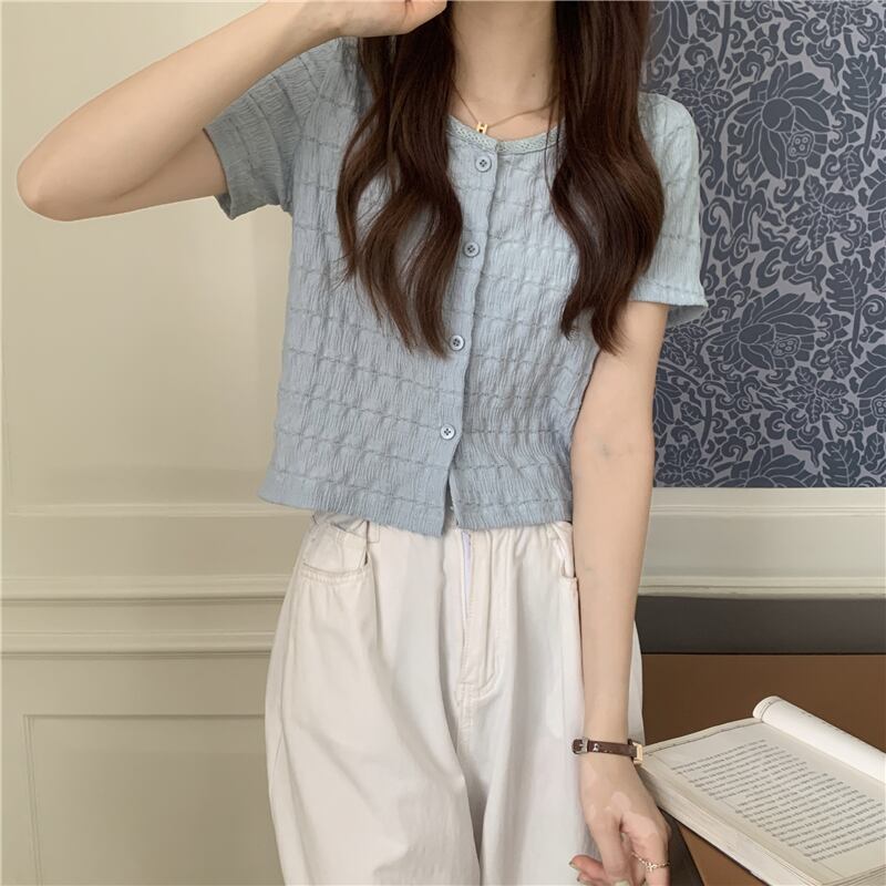 トップス レディース Tシャツ カットソー カーディガン クロップド丈 半袖 Vネック フロント ボタン かわいい 大人可愛い カジュアル ナチュラル こなれ感 抜け感 おしゃれ お洒落 綺麗 ラブリー ガーリー キュート 薄手 楽ちん 無地 ホワイト アプリコット ブルー レッド グリーン OL 通勤 学生 デート お出かけ 女子会 休日 イベント 送料無料 公園 フリーサイズ 春 夏 10代 20代 韓国 韓国系 着回し 普段使い モテ 定番 トレンド ファッション コーデ へそ出し プレゼント 流行