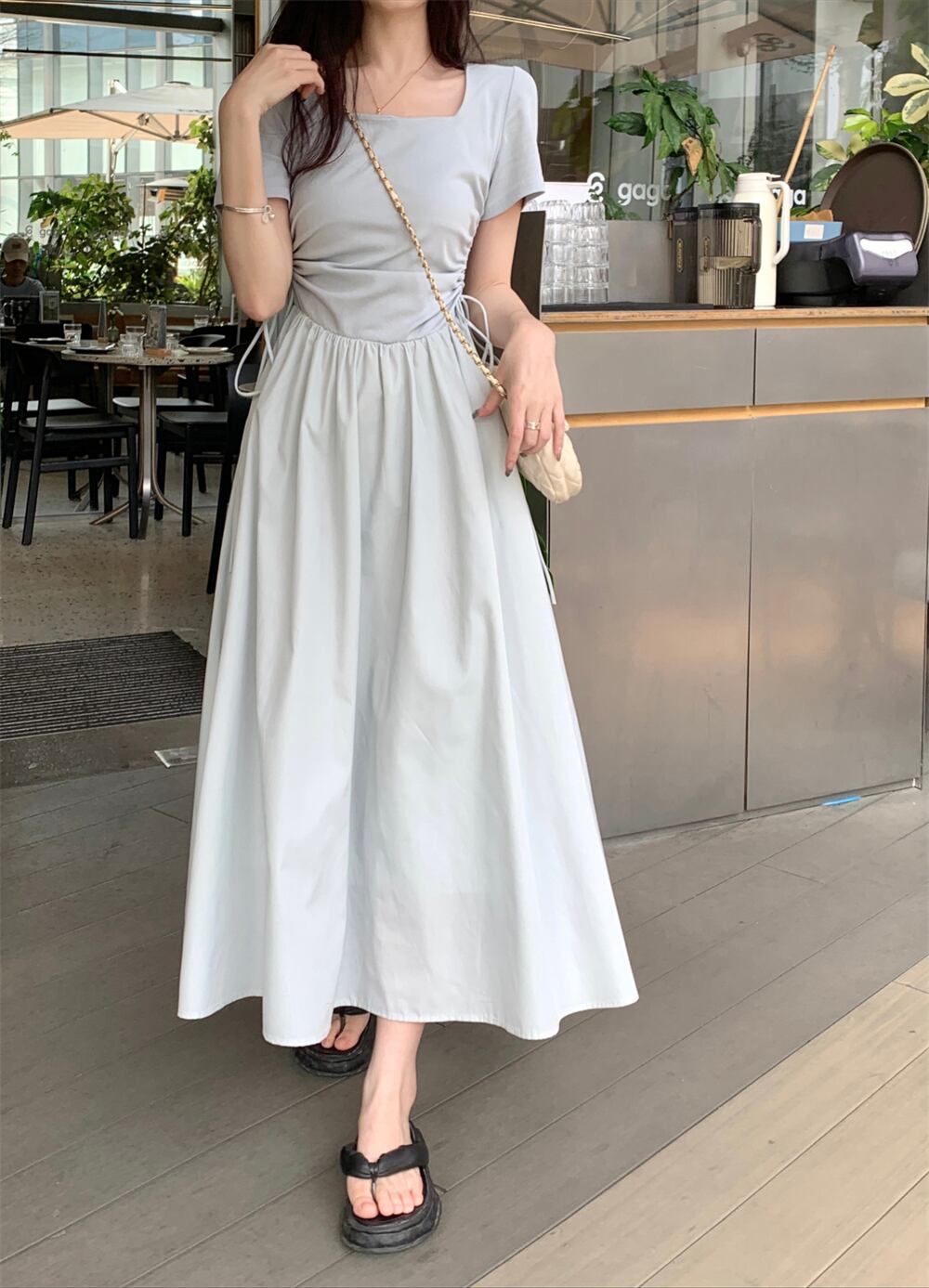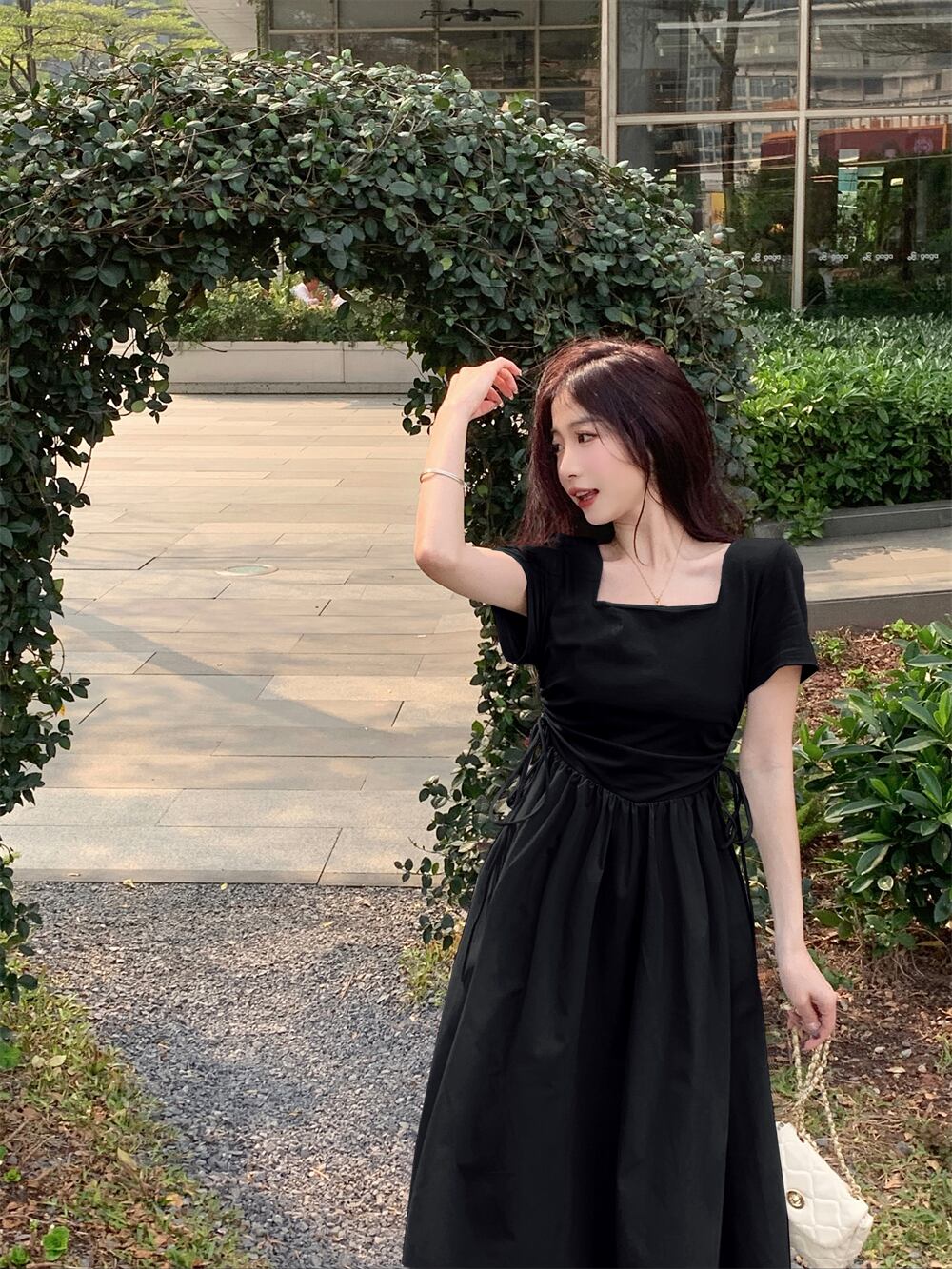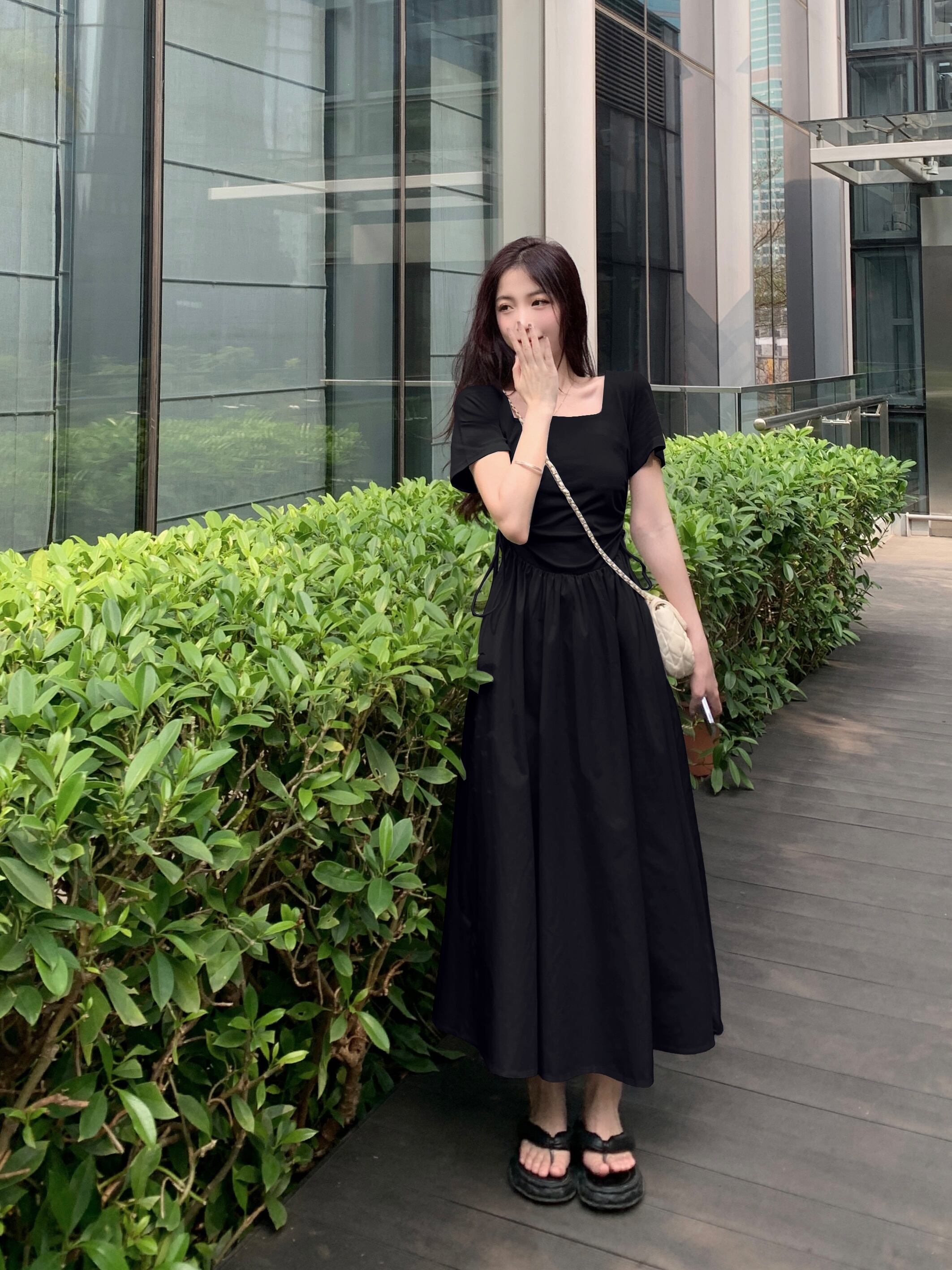 【着用レビュー】ワンピース レディース 大きいサイズ 送料無料 2色 ロングワンピース ドッキングワンピース 半袖 スクエアネック ハイウエスト かわいい 大人可愛い きれいめ シンプル 上品 エレガント 清楚 フェミニン おしゃれ お洒落 綺麗 お嬢様 おとな ナチュラル こなれ感 ラブリー キュート ガーリー ロマンチック 学生 通学 デート お出かけ 女子会 休日 L XL 2XL 3XL 4XL ブラック 黒 ブルー 春 夏 秋 10代 20代 30代 韓国 韓国系 着回し 普段使い モテ