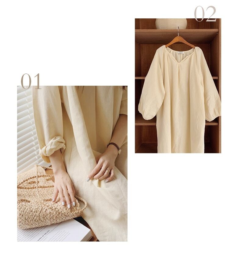 ワンピース レディース ロングワンピース 4カラー フリーサイズ アプリコット ブラック ピンク パープル カラバリ 長袖 無地 キーネック コットン 綿 パフスリーブ マキシ丈 ナチュラル ゆったり ルーズ 体型カバー リラクシー 楽ちん シンプル カジュアル フェミニン ガーリー キュート 大人可愛い おしゃれ 普段使い イベント デート お出かけ 女子会 休日 旅行 リゾート 着まわし こなれ感 ファッション コーデ スタイル モテ 10代 20代 30代 40代 50代 春 夏 秋 送料無料