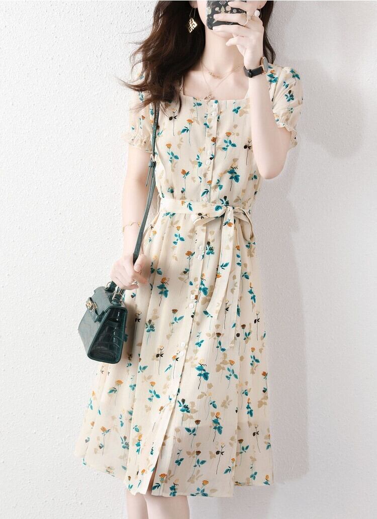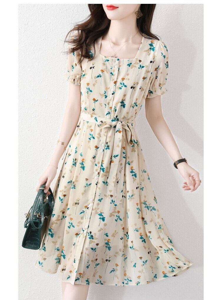 ワンピース レディース 花柄ワンピース フレアワンピース M L XL 2XL ミモレ ミモレ丈 半袖 スクエアネック シフォン ウエストリボン かわいい 大人可愛い きれいめ 上品 エレガント 清楚 フェミニン おしゃれ お洒落 綺麗 お嬢様 おとな ナチュラル こなれ感 ラブリー キュート ガーリー ロマンチック 抜け感 花柄 小花柄 フラワー 学生 通学 デート お出かけ 女子会 春 夏 20代 30代 40代 韓国 韓国系 着回し 普段使い 体型カバー ファッション コーデ インスタ映え 送料無料