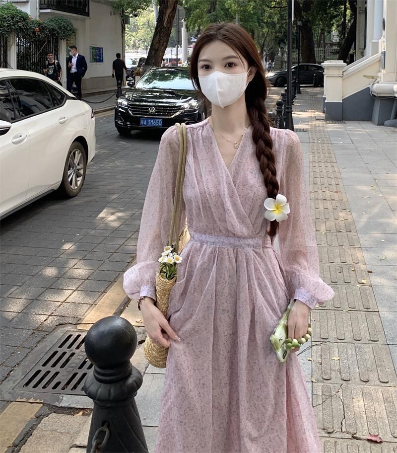 ワンピース レディース ミモレ ミモレ丈 ロング ロング丈 長袖 ランタンスリーブ Vネック カシュクール Aライン スリム 細身 シフォン フリル かわいい 大人可愛い シンプル 大人 上品 おしゃれ お洒落 レトロ エレガント モダン とろみ感 抜け感 ナチュラル ラブリー キュート ガーリー 大人 上品 レトロ 清楚 無地 20代 30代 40代 花柄 フラワー デート お出かけ 女子会 お泊まり パーティー イベント リゾート 旅行 海 韓国 韓国系 送料無料 体型カバー 美脚 脚長 フリーサイズ