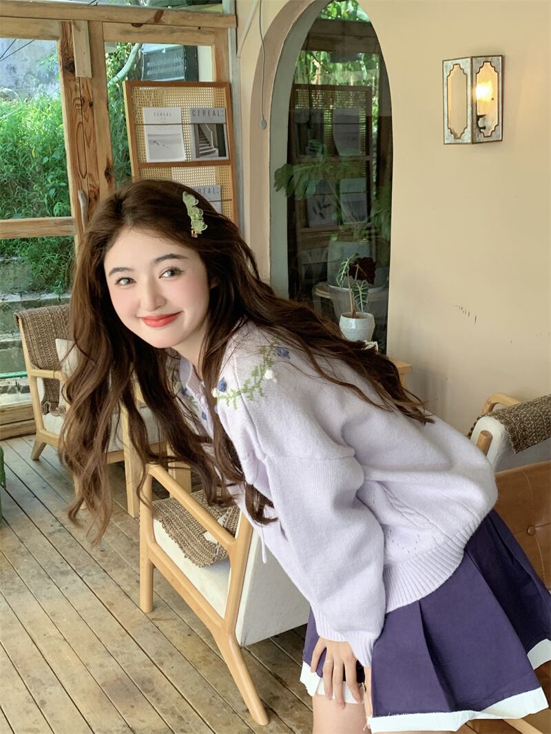 トップス レディース カーディガン 2色 ワンサイズ 袖あり 長袖 クルーネック ノーカラー 刺繍 リボン 前開き かわいい 大人可愛い きれいめ シンプル 上品 清楚 おしゃれ お嬢様 ラブリー キュート ガーリー レトロ アンティーク ロマンチック 華やか 花柄 小花柄 OL 学生 デート 女子会 休日 カフェ巡り 街歩き ホワイト 白 スミレ ワンサイズ 春 秋 冬 記念日 謝恩会 10代 20代 女性用 韓国系 着回し 普段使い 重ね着 体型カバー 楽ちん お揃い モテ トレンド 送料無料