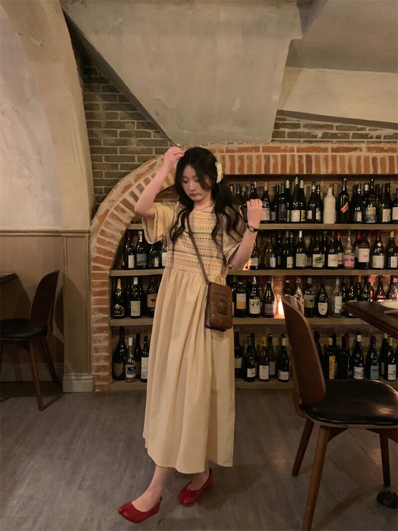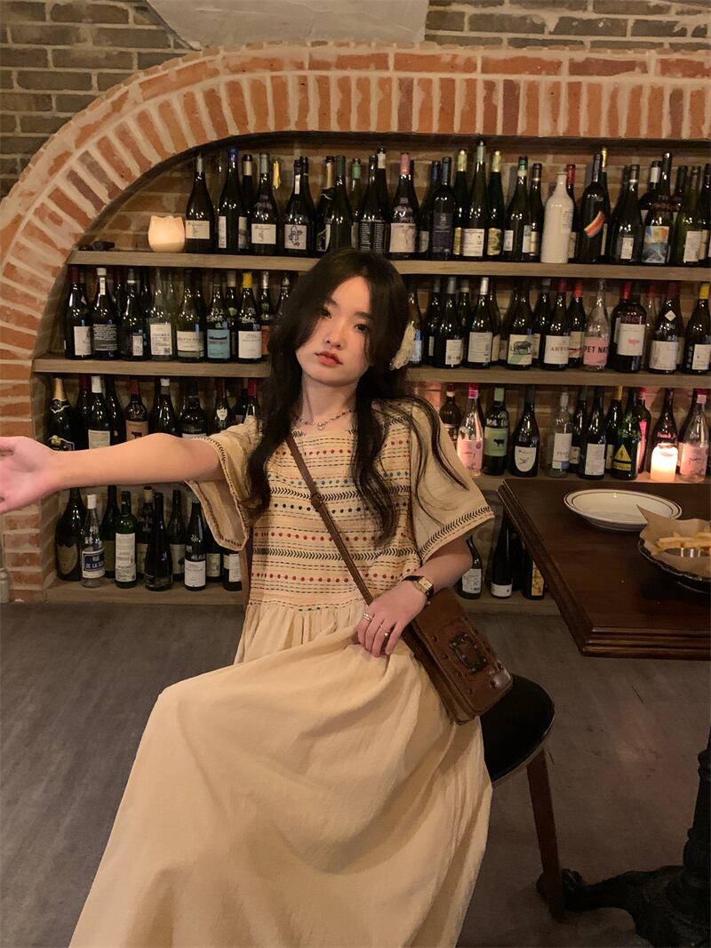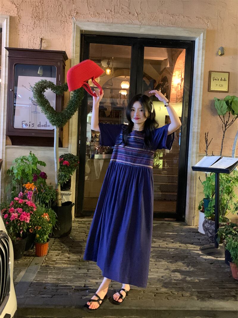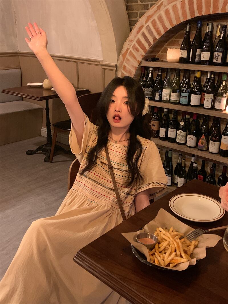 【着用レビュー】ワンピース レディース フレアワンピース 民族 刺繍 エキゾチック 2色 ミディアムワンピース ミモレ ロング 袖あり 半袖 パフスリーブ ラウンドネック フレア Aライン ゆったり かわいい 大人可愛い きれいめ 清楚 おしゃれ ナチュラル ラブリー キュート ガーリー OL 学生 デート お出かけ 女子会 休日 アプリコット ブルー 青 春 秋 記念日 二次会 ワンサイズ 10代 20代 ママ 韓国系 着回し 普段使い 重ね着 体型カバー 楽ちん 送料無料