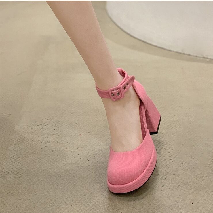 シューズ レディース ハイヒール 送料無料 2色 カラバリ くつ 靴 プラットフォーム チャンキーヒール 太ヒール 厚底 アンクルストラップ ラウンドトゥ ボリューミー 大人可愛い きれいめ シンプル カジュアル おしゃれ お洒落 キュート ラブリー ガーリー 22.5cm 23.0cm 23.5cm 24.0cm 24.5cm ピンク ブラック 無地 デート 10代 20代 30代 韓国 韓国系 普段使い イベント 女子会 ファッション コーデ モテ 存在感 脚長効果 スタイルアップ 美脚