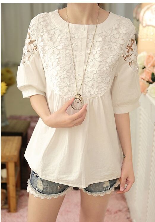 トップス レディース ブラウス M L XL 2XL ホワイト 半袖 5分袖 シャツ レース 花柄 フラワー 透け感 ラウンドネック パフスリーブ 華やか バックコンシャス シンプル カジュアル フェミニン キュート ガーリー 大人可愛い おしゃれ 普段使い デート お出かけ 女子会 休日 旅行 お呼ばれ 着まわし ファッション コーデ スタイル モテ 送料無料 こなれ感 ユニーク 韓国系 春 夏 涼しげ 10代 20代 30代 40代