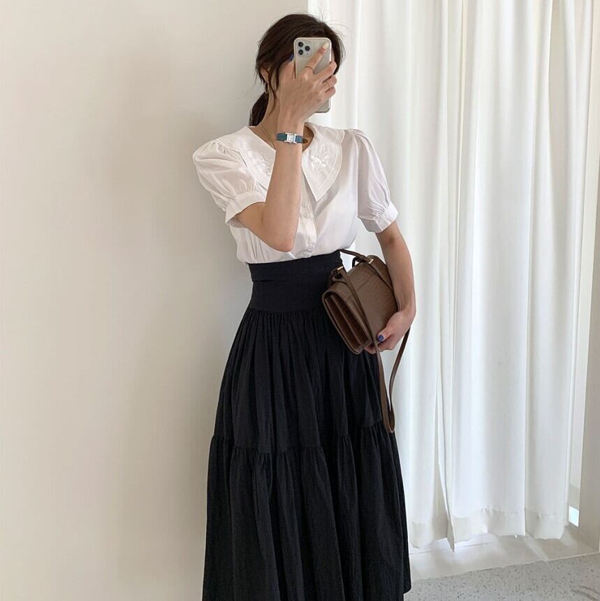 スカート レディース ロングスカート フレアスカート ティアードスカート ロング ロング丈 フレア ハイウエスト ウエストゴム かわいい 大人可愛い きれいめ カジュアル エレガント 清楚 フェミニン お洒落 綺麗 お嬢様 ナチュラル こなれ感 ラブリー キュート ガーリー ロマンチック 抜け感 華やか 送料無料 存在感 無地 学生 通学 デート お出かけ 女子会 休日 S M 黒 ブラック 春 夏 10代 20代 30代 40代 韓国 韓国系 着回し 普段使い デイリー モテ 体型カバー トレンド 流行