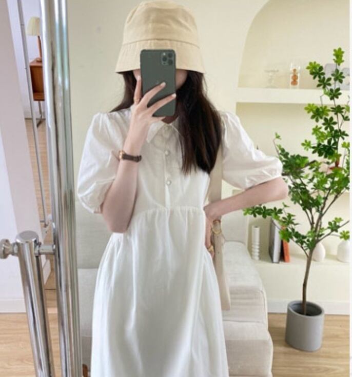 ワンピース レディース ロングワンピース ポロワンピース S M L XL 2XL 3XL 大きいサイズ ホワイト 半袖 5分袖 無地 綿 ミモレ丈 ロング 襟付き パフスリーブ Aライン 清楚 ハイウエスト 脚長効果 体型カバー シンプル フェミニン きれいめ カジュアル キュート ガーリー 上品 大人可愛い おしゃれ 普段使い イベント デート お出かけ 休日 旅行 通勤 通学 こなれ感 ファッション コーデ モテ 着まわし サマードレス 送料無料 春 夏 10代 20代 30代 40代 プラスサイズ