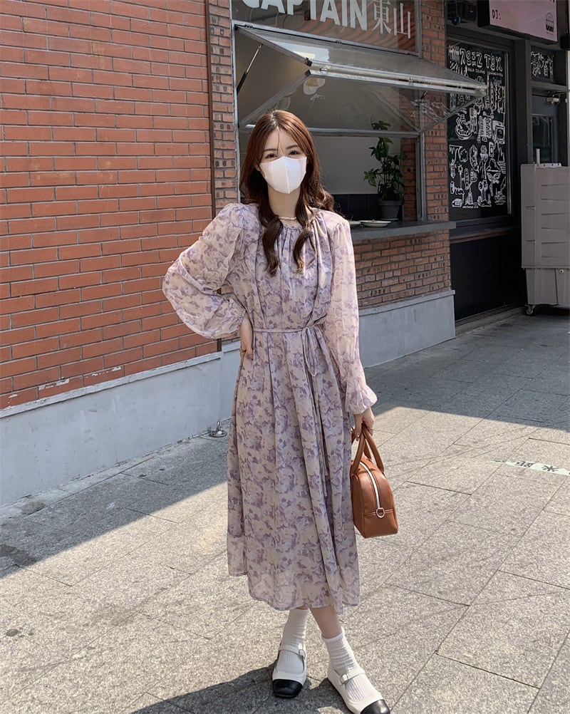 ワンピース レディース ミモレ ミモレ丈 ロング ロング丈 長袖 ラウンドネック Aライン ウエストマーク ウエストリボン かわいい 大人可愛い シンプル おとな 大人 上品 おしゃれ お洒落 レトロ エレガント モダン とろみ感 抜け感 ロマンチック フェミニン ナチュラル ラブリー キュート ガーリー 大人 上品 清楚 無地 20代 30代 40代 花柄 フラワー デート お出かけ 女子会 お泊まり パーティー イベント リゾート 旅行 海 韓国 韓国系 送料無料 体型カバー S M L XL 2XL
