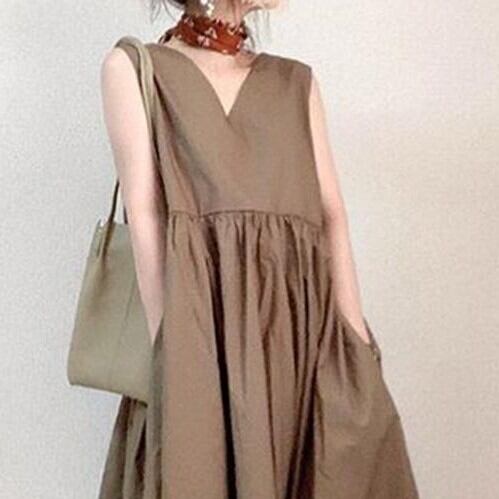 ワンピース レディース ロングワンピース マキシワンピース 3色 マキシ ロング丈 ノースリーブ Vネック フレア Aライン ハイウエスト プルオーバー かわいい 大人可愛い きれいめ シンプル カジュアル エレガント おしゃれ 綺麗 お嬢様 エスニック おとな ナチュラル こなれ感 ガーリー 華やか 無地 通勤 学生 通学 デート お出かけ 女子会 リゾート 旅行 海 フリーサイズ ゆったり カーキ アプリコット ブラック 春 夏 10代 20代 30代 ママ 韓国系 着回し 体型カバー モテ 送料無料