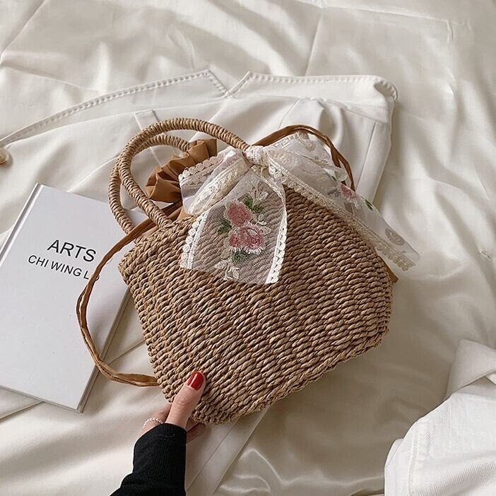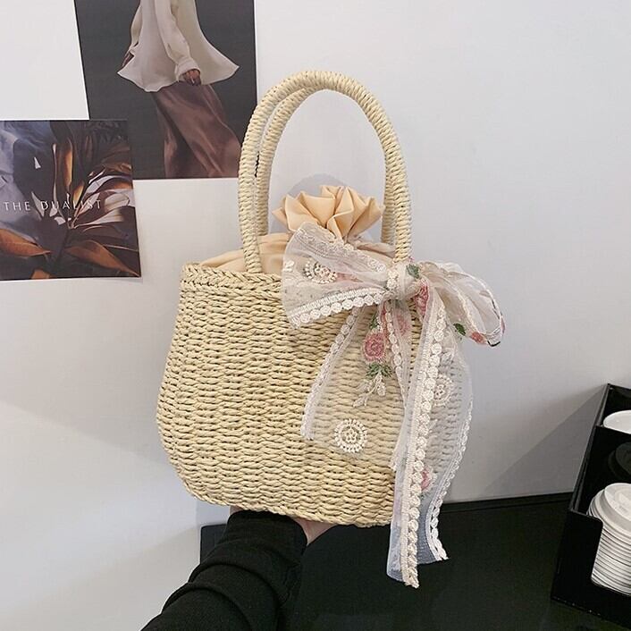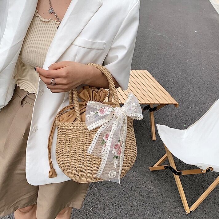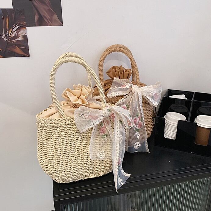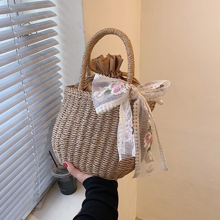 バッグ レディース 2色 かごバッグ 手持ち 自立 ラウンド型 巾着 刺繍 リボン ポリエステル 異素材MIX かわいい 大人可愛い きれいめ シンプル カジュアル 上品 エレガント おしゃれ おとな ナチュラル ラブリー キュート ガーリー レトロ 無地 通勤 学生 通学 デート お出かけ 女子会 リゾート 旅行 散歩 美術館巡り アート鑑賞 カフェ巡り 街歩き 小さめ カーキ ベージュ 春 夏 10代 20代 30代 40代 ママ 韓国系 普段使い 楽ちん コーデ モテ トレンド 流行 送料無料
