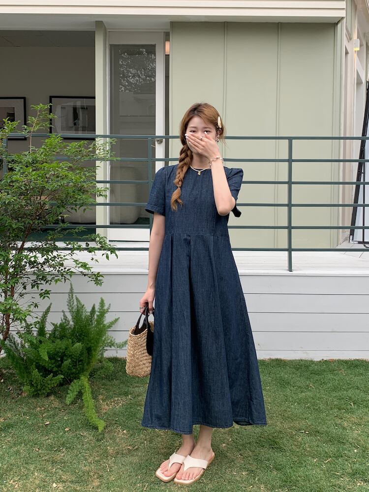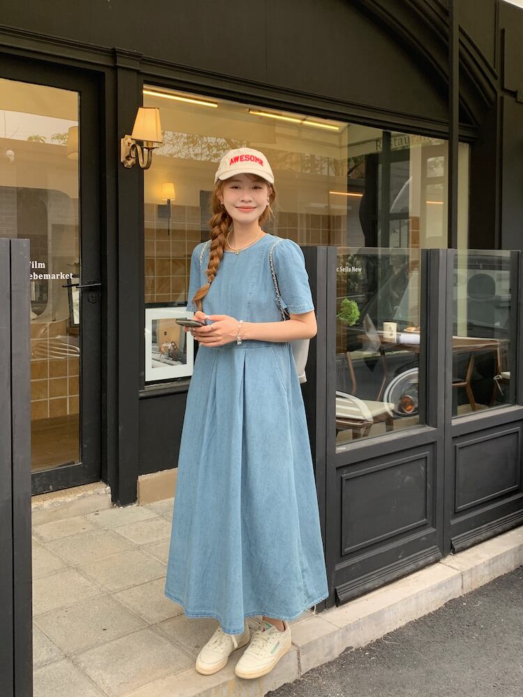 ワンピース レディース デニムワンピース デニム ロングワンピース ロング ロング丈 半袖 ゆったり ゆる テンセルデニム Aライン ウエストマーク ボタン かわいい 大人可愛い シンプル カジュアル おしゃれ ストリート セクシー おとな ナチュラル こなれ感 キュート ガーリー 華やか 無地 通勤 学生 通学 デート お出かけ 女子会 散歩 カフェ巡り フリーサイズ ワンサイズ ネイビー ライトブルー 春 夏 10代 20代 30代 ママ 韓国系 着回し 普段使い 体型カバー コーデ モテ 送料無料