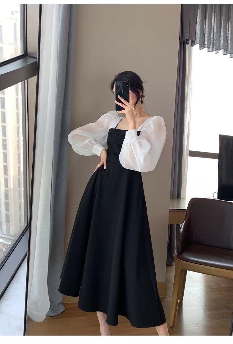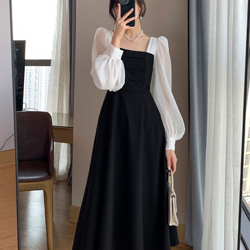 ワンピース レディース ドッキングワンピース スクエアネック シースルー 透け感 レイヤード ミモレ丈 ロング丈 Aライン Aラインワンピース かわいい 大人可愛い フェミニン 清楚 ラブリー キュート ガーリー シック おしゃれ 大人女子 フォーマル レトロ ドッキング パフスリーブ ハイウエスト 脚長 美脚 10代 20代 30代 韓国 ファッション コーデ コーディネート 可愛い デート 女子会 散歩 イベント パーティー おでかけ M L XL 2XL 3XL 4XL ブラック 黒 送料無料