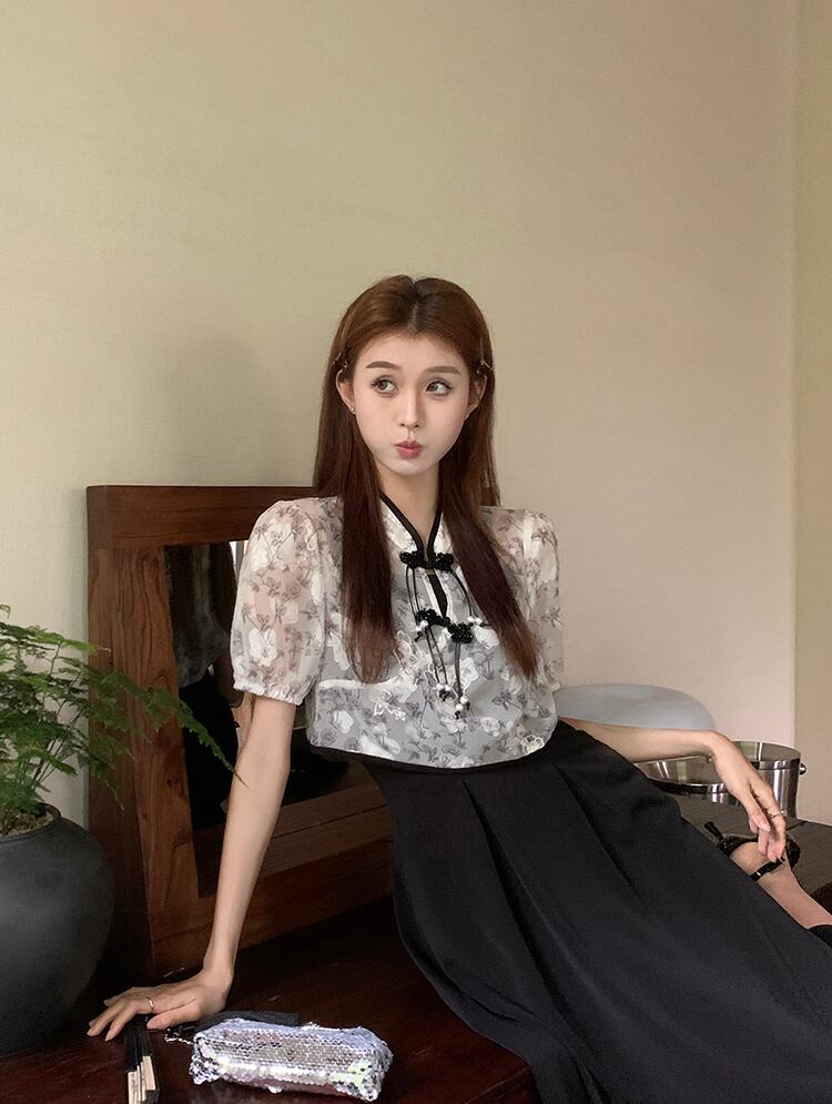 トップス&キャミワンピースのチャイナ風セットアップです。