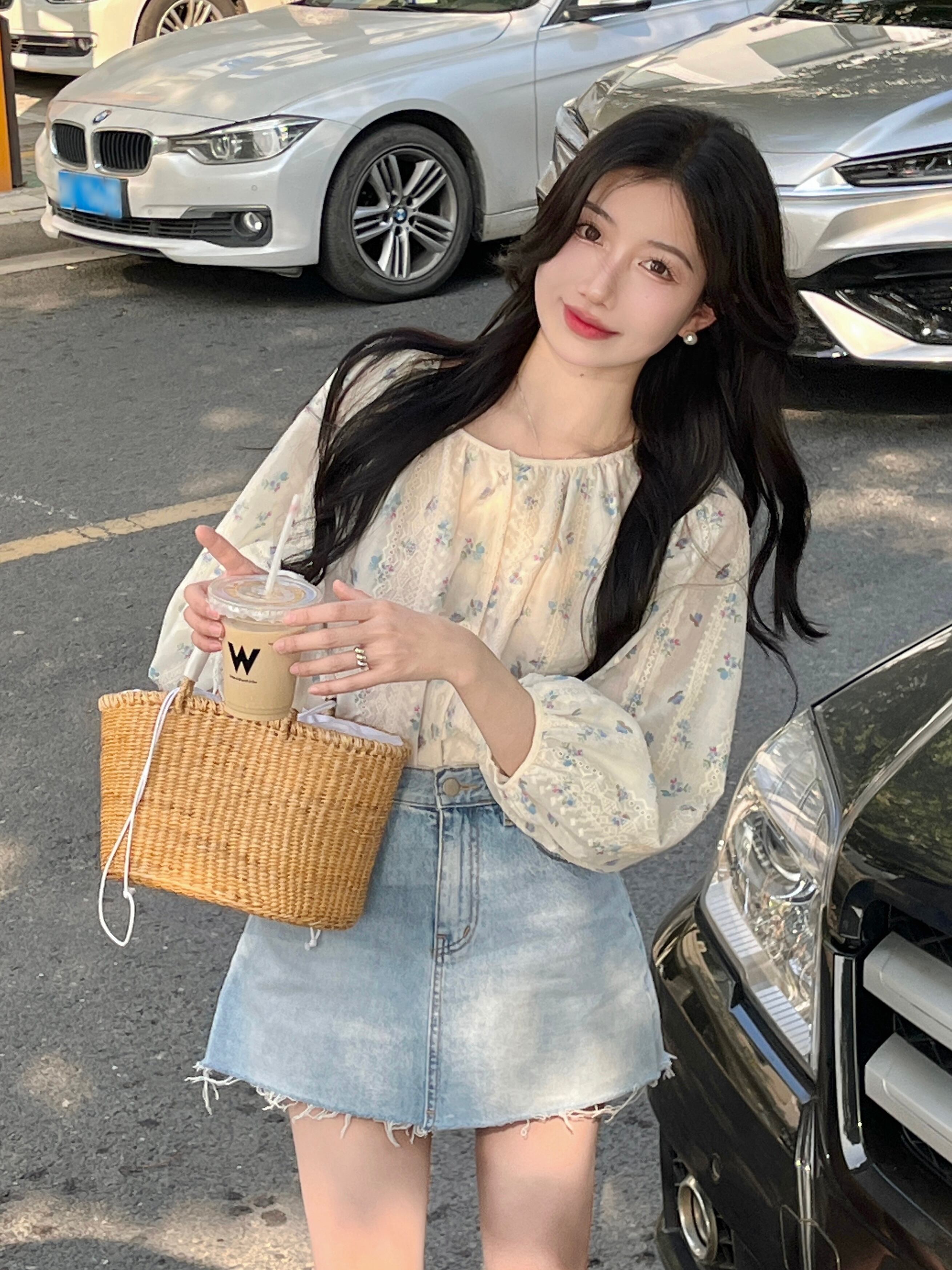 トップス レディース シャツ ブラウス ショート丈 長袖 ボリューム袖 ラウンドネック 細身 シフォン フリル プルオーバー かわいい レース 大人可愛い きれいめ カジュアル エレガント フェミニン おしゃれ セクシー おとな ナチュラル こなれ感 キュート ガーリー レトロ 華やか 花柄 学生 通学 デート お出かけ 女子会 パーティー リゾート 旅行 海 カフェ巡り 街歩き フリーサイズ ゆる 春 夏 秋 10代 20代 30代 ママ 韓国系 着回し ファッション コーデ モテ ブルー 送料無料