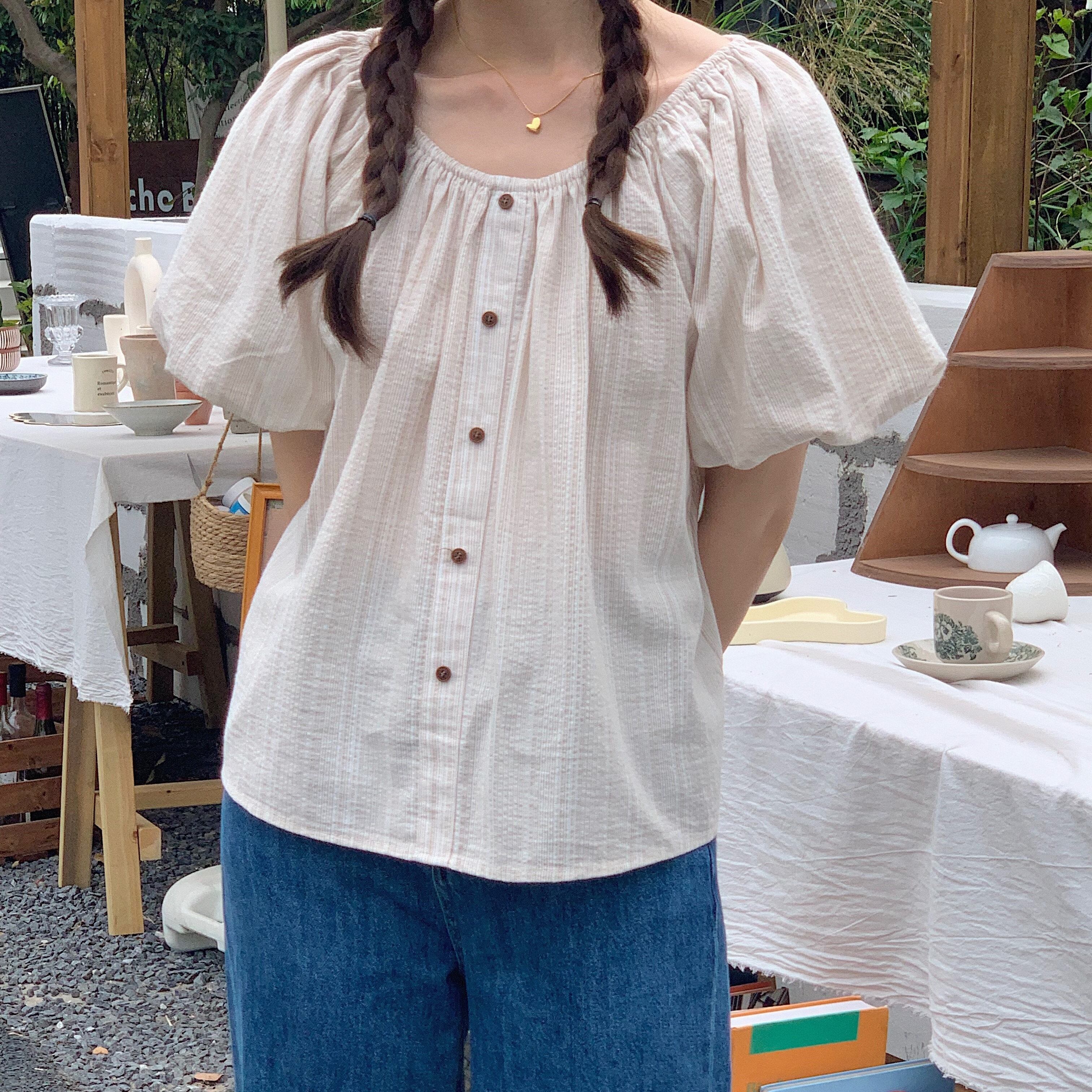 ストライプ柄の生地感とパフスリーブが大人可愛い♡