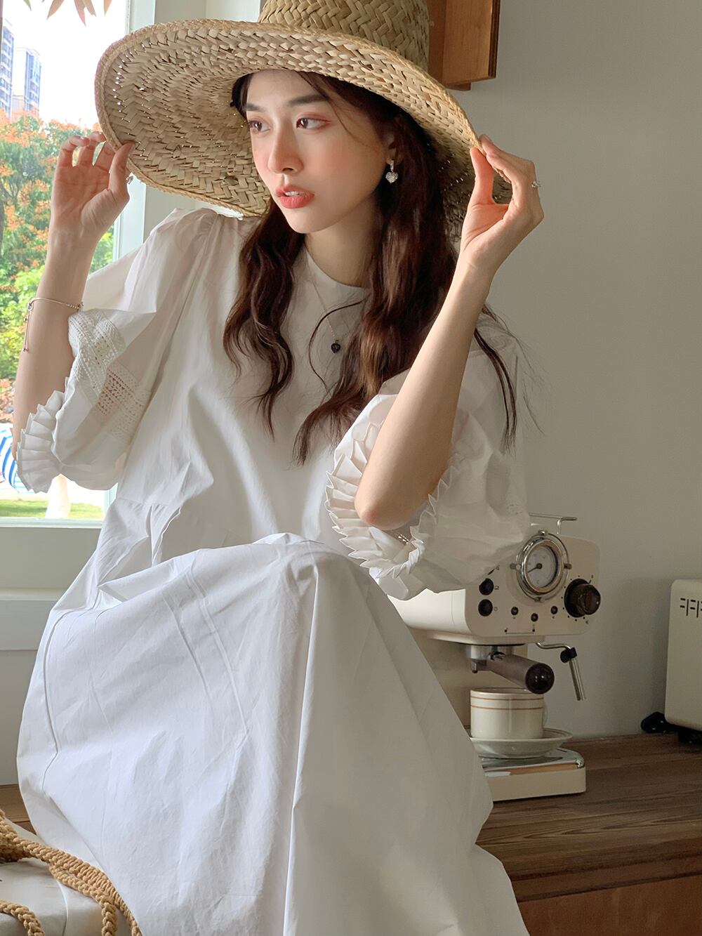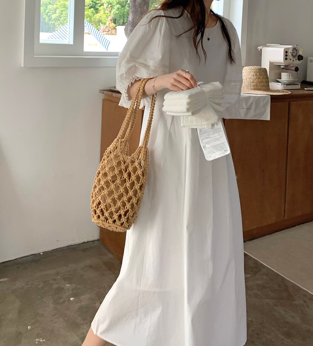 【着用レビュー】ワンピース レディース ロングワンピース 半袖 5分袖 パフスリーブ ぽわん袖 レース フリル かわいい 大人可愛い きれいめ カジュアル 上品 エレガント 清楚 フェミニン おしゃれ お洒落 綺麗 お嬢様 おとな ナチュラル こなれ感 ラブリー キュート ガーリー レトロ ロマンチック 抜け感 華やか 主役級 存在感 無地 学生 通学 デート お出かけ 女子会 リゾート 旅行 フリーサイズ ホワイト 白 春 夏 10代 20代 30代 韓国 韓国系 着回し 普段使い 体型カバー 送料無料