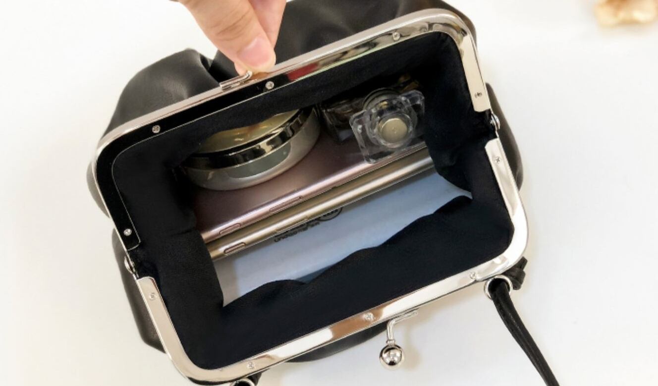 スマホや鍵など、コンパクトながらちょっとしたお出かけに持っていきたいアイテムはしっかり収納できる◎がま口ポシェットです♪