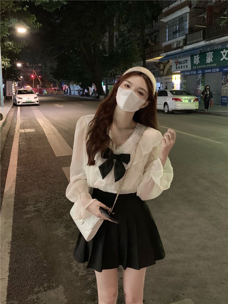 存在感のあるリボンと甘いレースデザインが可愛いブラウス♡