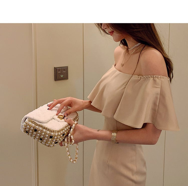 オフショルダーがセクシーなマーメイドスカートのドレスです。