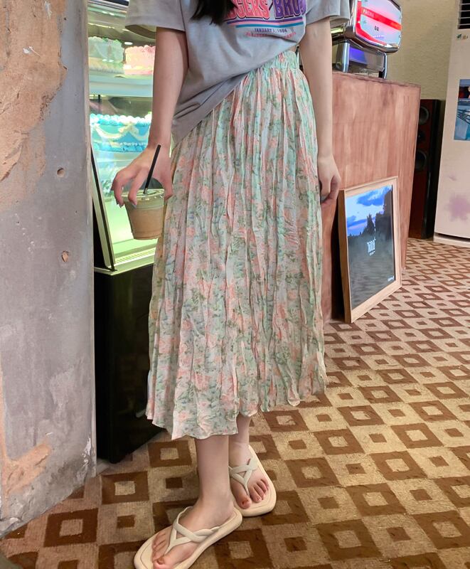 スカート レディース クリンクルプリーツ 花柄 ウエストゴム ミモレ丈 ひざ下 Aライン ハイウエスト かわいい 大人可愛い きれいめ シンプル 大人 上品 おしゃれ お洒落 ラブリー キュート フェミニン エレガント 花柄 フラワー 春 夏 秋 10代 20代 30代 40代 オフィス ビジネス OL 通勤 学生 通学 デート 休日 着回し 普段使い 韓国 韓国系 ファッション コーデ スタイル モテ 体型カバー 美脚 脚長 ワンサイズ パープル ピンク インスタ映え 送料無料