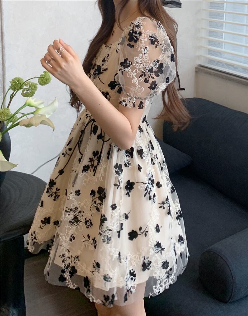 ワンピース レディース ミニ ショート丈 半袖 リボン バイカラー レース 透け感 チュール スクエアネック かわいい 大人可愛い きれいめ カジュアル エレガント 清楚 フェミニン シック おしゃれ お洒落 綺麗 お嬢様 ナチュラル こなれ感 ラフ ラブリー キュート ガーリー ロマンチック 抜け感 存在感 華やか 主役級 花柄 小花柄 フラワー 学生 通学 デート お出かけ 女子会 休日 散歩 リゾート S M 春 夏 10代 20代 韓国系 着回し モテ トレンド 流行 インスタ映え 送料無料