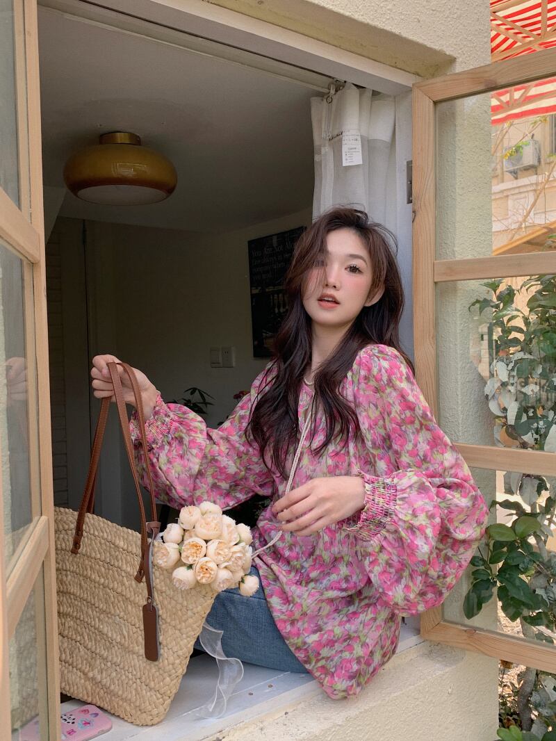 トップス レディース ブラウス シャツ 長袖 花柄 フラワー タッセル キーネック シフォン かわいい 大人可愛い きれいめ オシャレ シフォン パフスリーブ 長袖 大人 通勤 OL ゆったりシャツ カジュアル 上品 おしゃれ エレガント お洒落 かっこいい フェミニン 20代 30代 40代 オフィス ビジネス 通勤 デート お出かけ 女子会 休日 着回し 普段使い ファッション コーデ スタイル モテ 体型カバー トレンド 流行 インスタ映え ワンサイズ ピンク とろみ感 送料無料