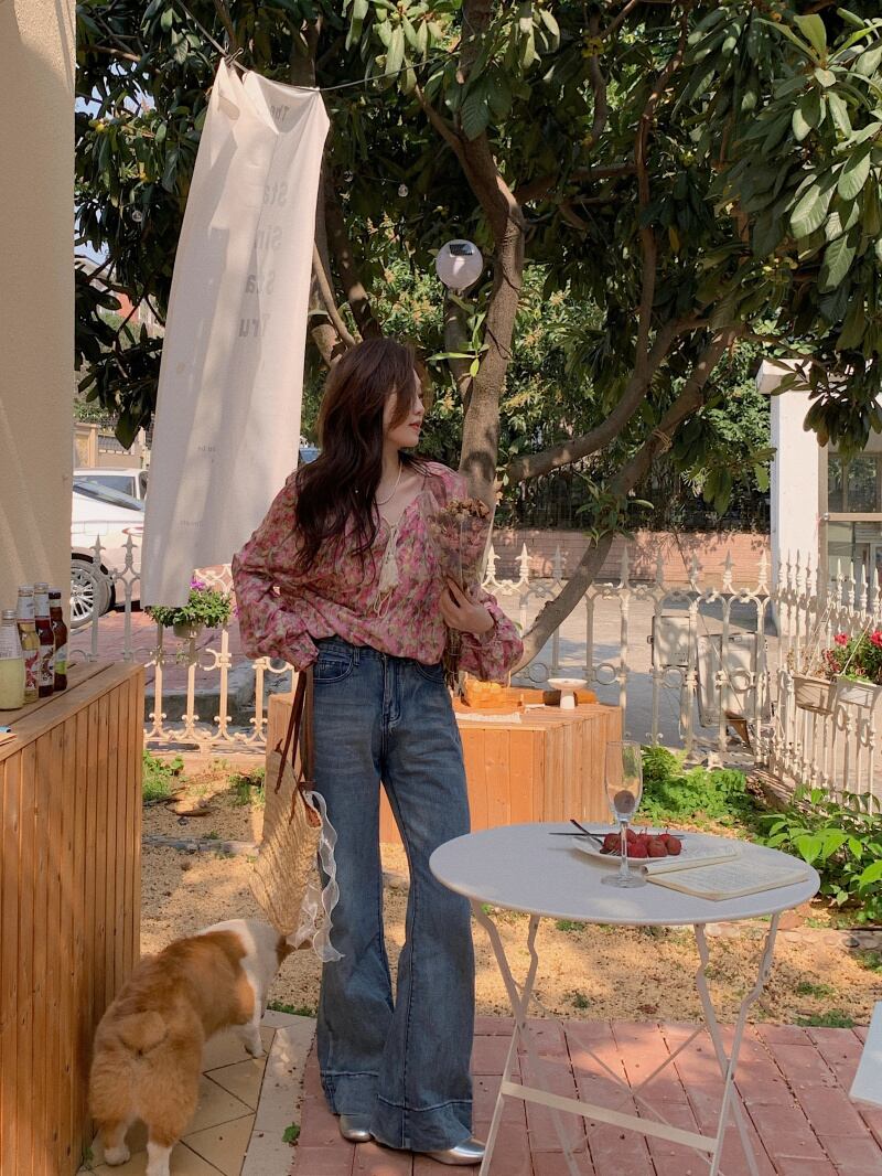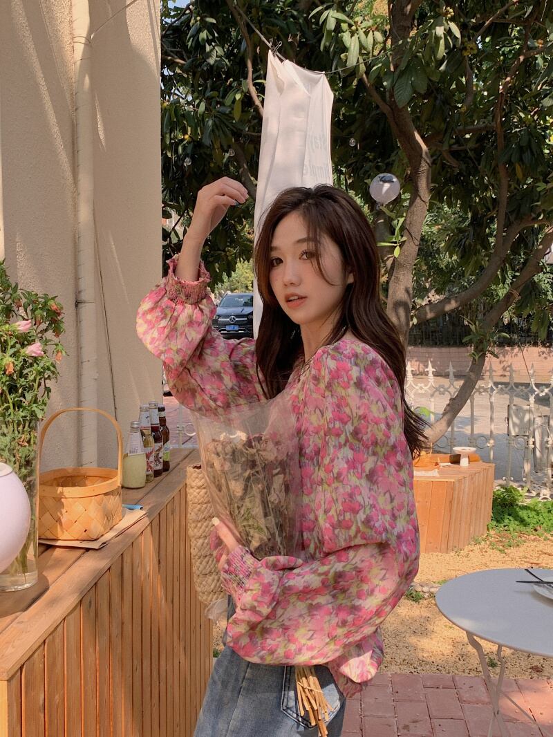 女性らしい花柄がふんわりフェミニンなブラウス。