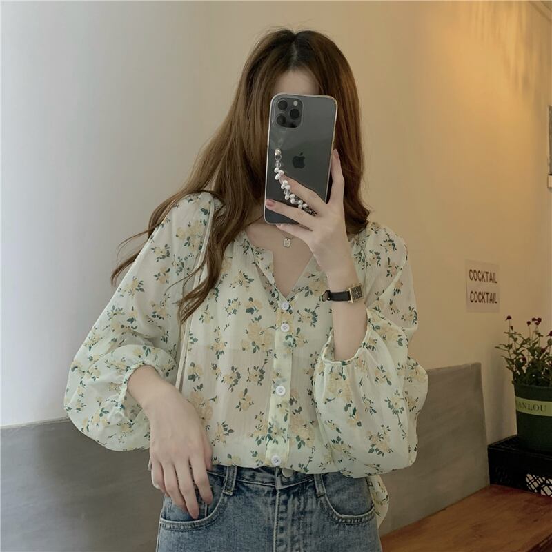 トップス レディース ブラウス シャツ 長袖 花柄 フラワー キーネック シフォン 透け感 かわいい 大人可愛い きれいめ オシャレ シフォン パフスリーブ 長袖 大人 通勤 OL ゆったりシャツ カジュアル 上品 おしゃれ エレガント お洒落 かっこいい フェミニン 20代 30代 40代 オフィス ビジネス 通勤 デート お出かけ 女子会 休日 着回し 普段使い ファッション コーデ スタイル モテ 体型カバー トレンド 流行 インスタ映え ワンサイズ イエロー とろみ感 送料無料