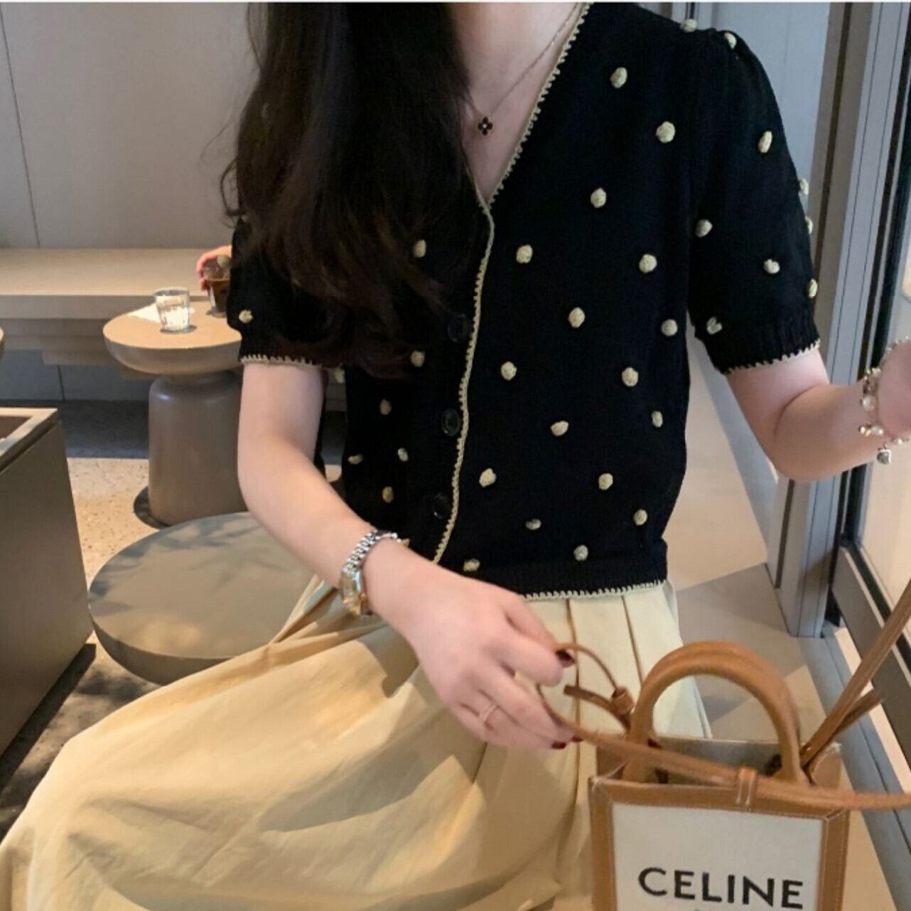 トップス レディース カーディガン ニットカーディガン ニット セーター 半袖 ショート丈 薄手 Vネック シンプル かわいい 大人可愛い カジュアル 大人 上品 お洒落 大人女子 こなれ感 ラフ ルーズ 抜け感 シック ラブリー ガーリー キュート 水玉 ドット柄 春 秋 10代 20代 30代 40代 OL 通勤 学生 通学 デート お出かけ 女子会 お泊まり 休日 リゾート 旅行 散歩 街歩き ショッピング 着回し 重ね着 コーデ 楽ちん 韓国 S M L XL ブラック ホワイト 送料無料