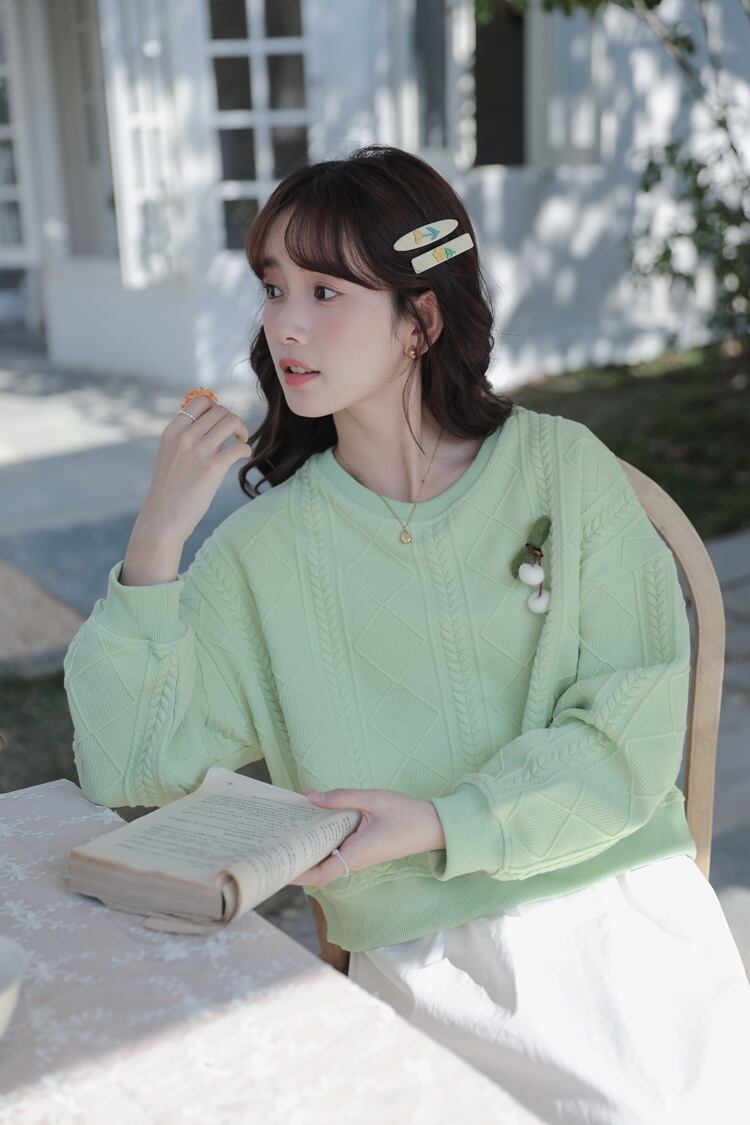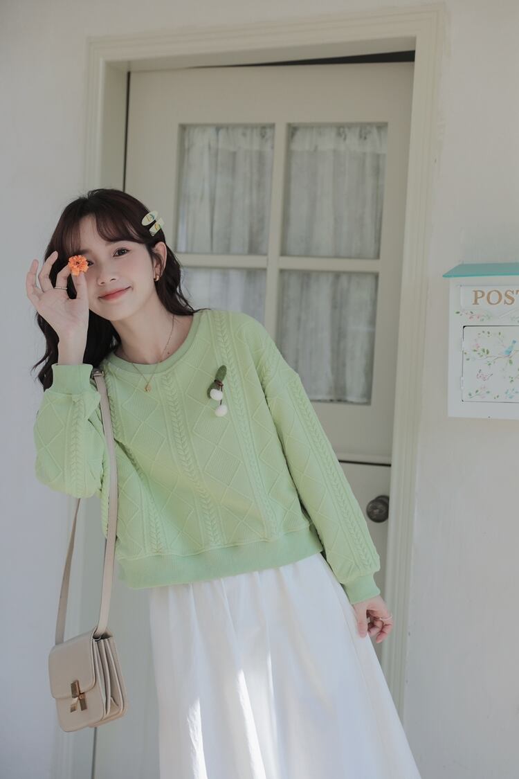 トップス レディース ニット セーター プルオーバー 長袖 ケーブル編み さくらんぼ チェリー かわいい 大人可愛い きれいめ シンプル カジュアル ナチュラル 清楚 フェミニン おとな おしゃれ お洒落 こなれ感 ラブリー ガーリー キュート 主役級 存在感 抜け感 無地 春 秋 10代 20代 30代 40代 OL 通勤 学生 通学 デート お出かけ 女子会 休日 着回し 普段使い 韓国 韓国系 ファッション コーデ スタイル モテ 体型カバー トレンド S M L 緑 グリーン 青 ブルー 送料無料