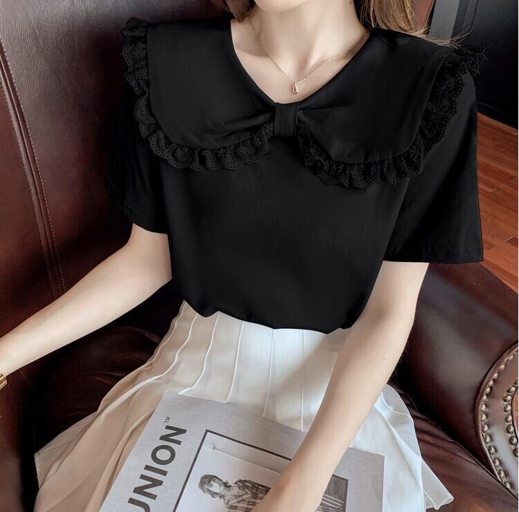 トップス レディース 4色 Tシャツ カットソー ブラウス 半袖 S M L XL ビッグカラー 刺繍 フリル リボン かわいい 大人可愛い 上品 エレガント 清楚 フェミニン おしゃれ お洒落 お嬢様 おとな ナチュラル こなれ感 ラブリー キュート ガーリー ロマンチック 抜け感 華やか 無地 学生 通学 通勤 OL デート お出かけ 女子会 休日 カフェ お買い物 ホワイト 白 ブラック 黒 ピンク ブルー 青 春 夏 20代 30代 40代 韓国 韓国系 着回し 普段使い モテ トレンド 送料無料