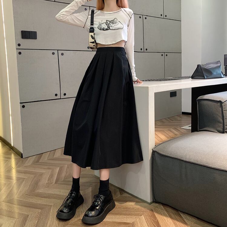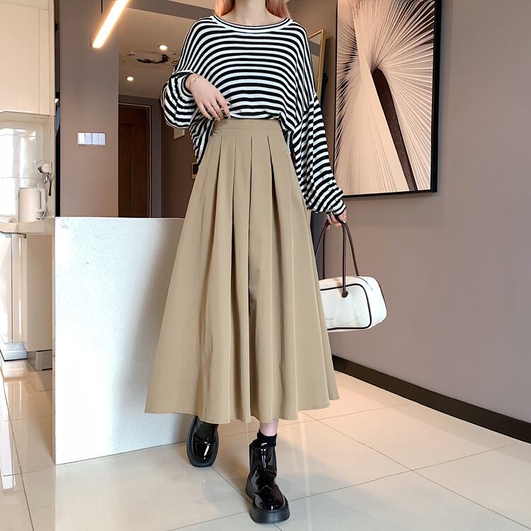 スカート レディース ロングスカート Aラインスカート Aライン プリーツスカート ロング丈 ミモレ丈 ハイウエスト タック かわいい 大人可愛い シンプル カジュアル おしゃれ 大人女子 ラブリー キュート ガーリー 抜け感 ナチュラル こなれ感 存在感 主役級 S M L カーキ ブラック 無地 春 夏 秋 10代 20代 30代 40代 OL 通勤 学生 通学 デート 散歩 お出かけ 休日 散歩 女子会 着回し 普段使い 韓国系 ファッション コーデ スタイル 体型カバー モテ インスタ 送料無料