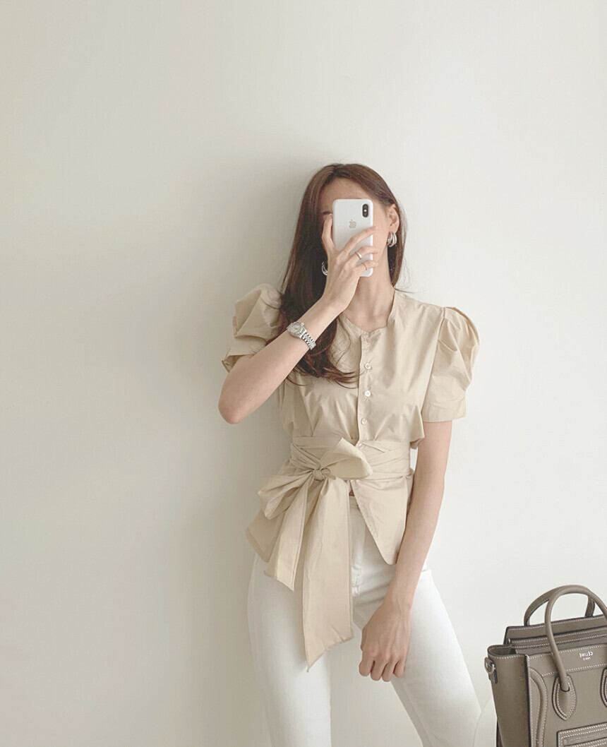 トップス レディース カットソー シャツ ブラウス 半袖 パフスリーブ シフォン リボン ベルト ウエストリボン 2色 かわいい 大人可愛い きれいめ 上品 エレガント 清楚 フェミニン おしゃれ お洒落 おとな ナチュラル こなれ感 ロマンチック 抜け感 爽やか 主役級 存在感 無地 OL 通勤 学生 通学 デート お出かけ お買い物 S M ベージュ ホワイト 白 夏 20代 30代 40代 韓国 韓国系 普段使い ファッション コーデ モテ トレンド 流行 インスタ映え 送料無料
