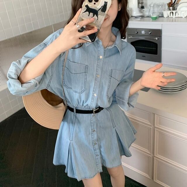 ワンピース レディース デニムワンピース ショートワンピース ショート丈 S M L XL 2XL 3XL 大きいサイズ ゆったり ゆる デニム Aライン ウエストマーク ボタン デニム かわいい 大人可愛い シンプル カジュアル おしゃれ ストリート セクシー おとな ナチュラル こなれ感 キュート ガーリー 華やか 無地 通勤 学生 通学 デート お出かけ 女子会 散歩 カフェ巡り 街歩き フリーサイズ ワンサイズ ネイビー ライトブルー 春 夏 10代 20代 30代 ママ 韓国系 送料無料