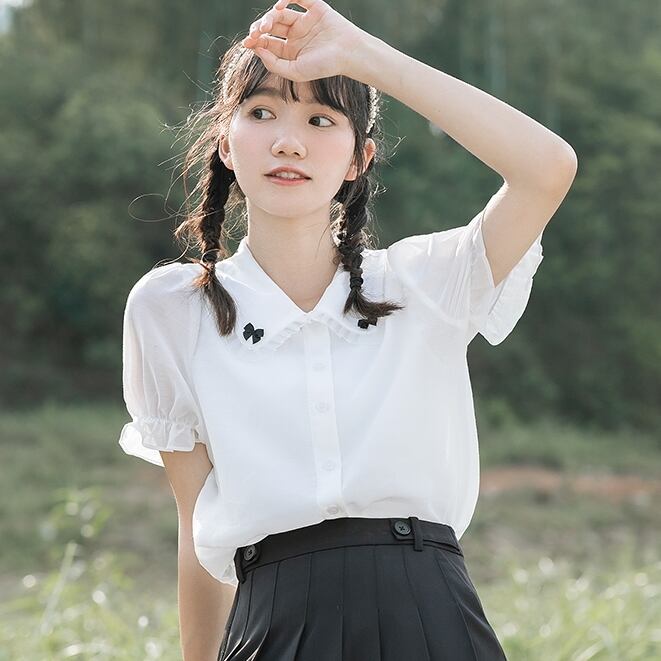 トップス レディース カットソー ブラウス 半袖 ビッグカラー 刺繍 リボン プリーツ キャンディースリーブ フリル かわいい 大人可愛い 上品 エレガント 清楚 フェミニン おしゃれ お洒落 お嬢様 おとな ナチュラル こなれ感 ラブリー キュート ガーリー ロマンチック 抜け感 華やか 主役級 存在感 無地 学生 通学 デート お出かけ 女子会 休日 カフェ巡り お買い物 S M L ホワイト 白 春 夏 20代 30代 40代 韓国 韓国系 着回し 普段使い モテ トレンド 送料無料