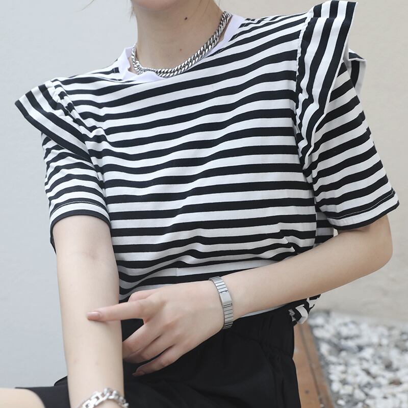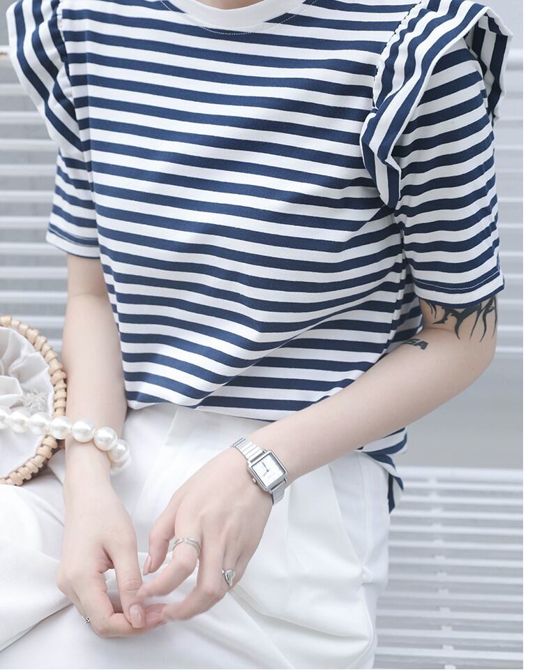トップス レディース Tシャツ カットソー シャツ ブラウス 半袖 クルーネック フリル かわいい 大人可愛い きれいめ シンプル カジュアル 上品 清楚 フェミニン おしゃれ お洒落 おとな ナチュラル こなれ感 ラブリー キュート ガーリー レトロ ロマンチック 抜け感 主役級 存在感 ボーダー 通勤 学生 通学 デート お出かけ 女子会 M L XL 夏 20代 30代 40代 50代 韓国 韓国系 着回し 普段使い 体型カバー スタイル モテ トレンド 流行 送料無料