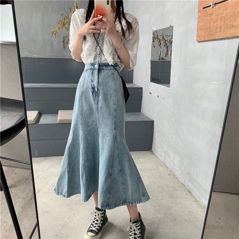 スカート レディース デニム ロング丈 マーメイド ハイウエスト Aライン かわいい 大人可愛い カジュアル レトロ おしゃれ お洒落 ラブリー キュート ガーリー 主役級 存在感 ストリート 無地 春 夏 秋 10代 20代 30代 学生 通学 デート お出かけ 女子会 着回し 普段使い 韓国系 ファッション コーデ スタイル モテ 体型カバー 脚長 美脚 トレンド 流行 インスタ映え S M L ブルー 送料無料