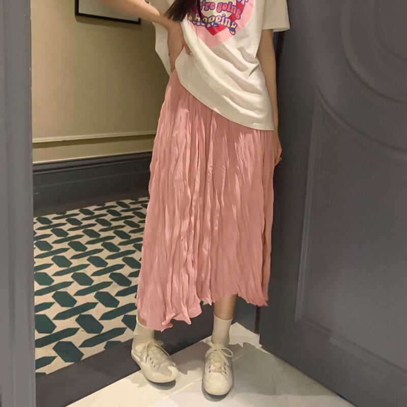スカート レディース 5色 クリンクルプリーツ 無地 ウエストゴム ミモレ丈 ひざ下 Aライン ハイウエスト かわいい 大人可愛い きれいめ シンプル 大人 上品 おしゃれ お洒落 ラブリー キュート フェミニン エレガント 春 夏 秋 10代 20代 30代 40代 オフィス ビジネス OL デート 休日 着回し 普段使い 韓国系 ファッション コーデ スタイル モテ 体型カバー 美脚 脚長 ワンサイズ ブラック ホワイト グリーン ピンク レッド S M L XL 大きいサイズ インスタ映え 送料無料