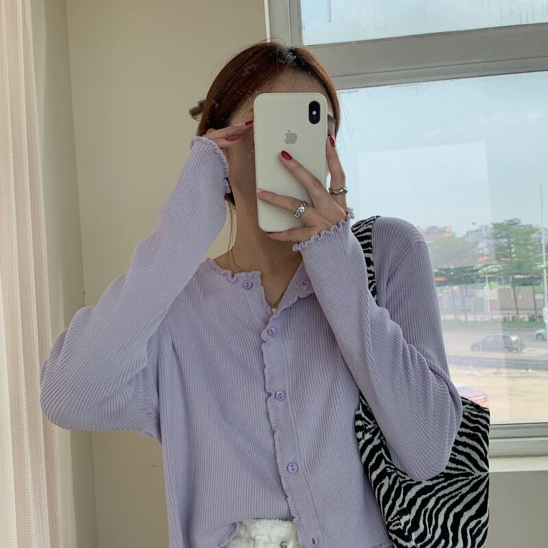 トップス レディース カーディガン フリル 4色 ボレロ 長袖 フロント ボタン レース 透け感 タイト スリム かわいい 大人可愛い カジュアル ナチュラル こなれ感 抜け感 おしゃれ お洒落 綺麗 ラブリー ガーリー キュート 薄手 楽ちん 無地 パープル イエロー ブラック ピンク OL 通勤 学生 デート お出かけ 女子会 休日 イベント 送料無料 公園 フリーサイズ 春 夏 秋 10代 20代 30代 40代 韓国 韓国系 オルチャン 着回し 普段使い モテ 定番 ファッション