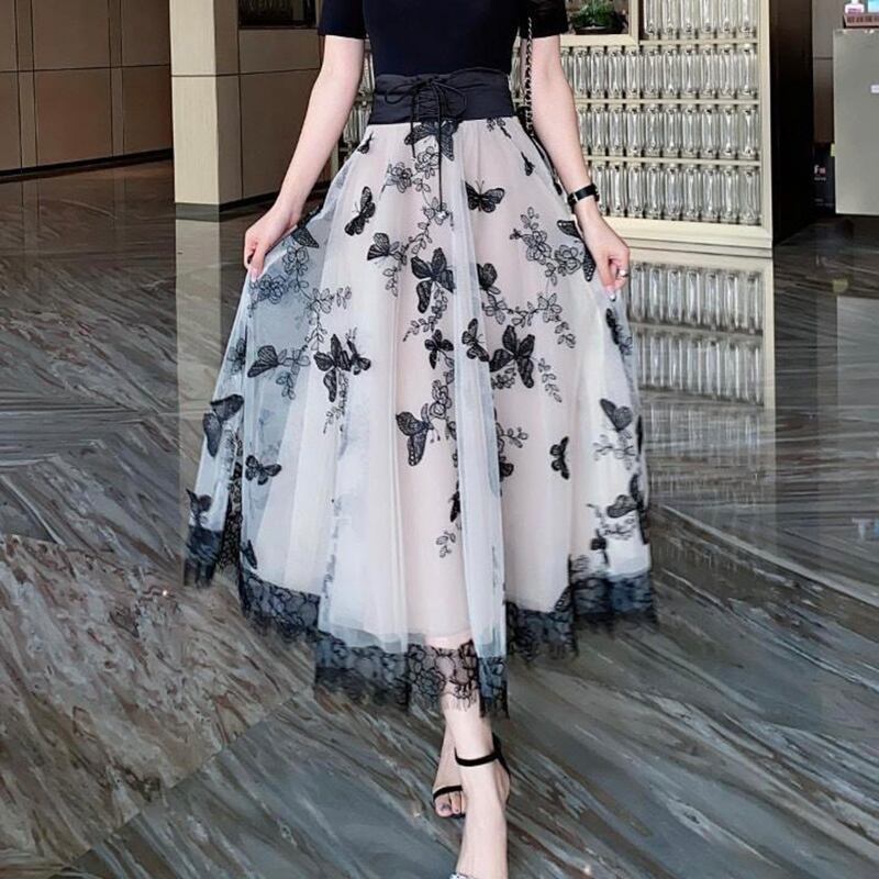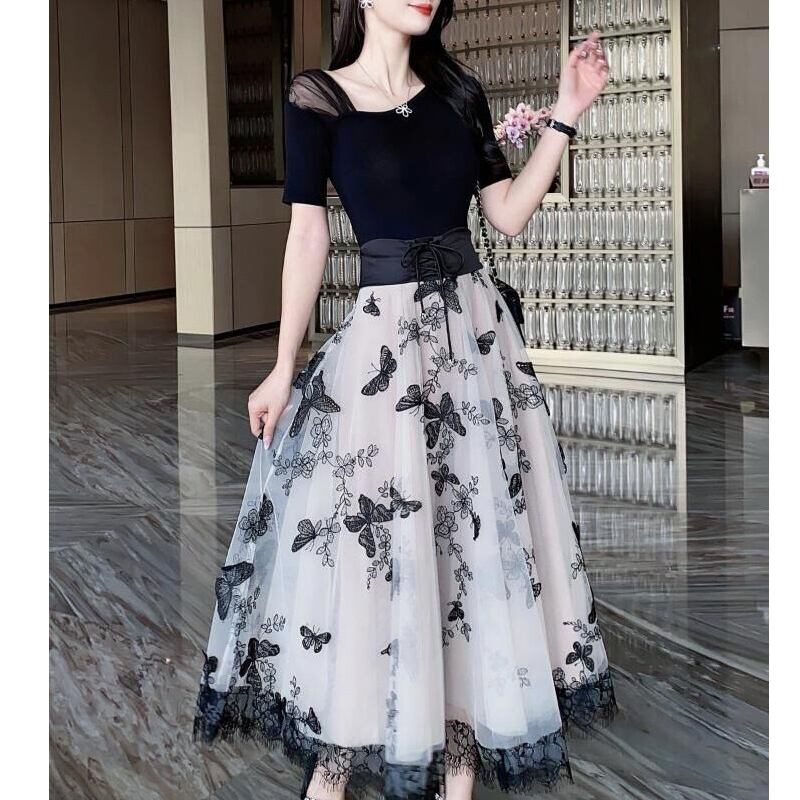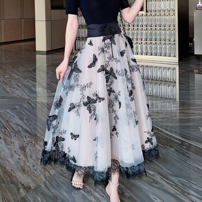 スカート レディース フレアスカート チュールスカート S M L XL 2XL チュール 蝶々 アイラッシュレース 半袖 アシンメトリー レース 花柄 切り替え ロング丈 Aライン ウエストゴム かわいい 大人可愛い きれいめ フェミニン おしゃれ お洒落 おとな ナチュラル キュート ガーリー 学生 通学 デート お出かけ 女子会 旅行 ホワイト 春 夏 秋 冬 10代 20代 30代 韓国 韓国系 着回し 普段使い 重ね着 体型カバー コーデ 韓国ファッション フレンチファッション 送料無料