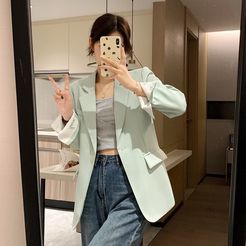 アウター レディース ジャケット テーラード 長袖 スーツ襟 オーバーサイズ ビッグシルエット 刺繍 ロゴ バイカラー裏地 ドロップショルダー シングルブレスト ポケット かわいい 大人可愛い きれいめ シンプル カジュアル 上品 エレガント 清楚 おしゃれ 綺麗 ナチュラル ラブリー キュート ガーリー 無地 通勤 通学 デート お出かけ 女子会 ワンサイズ ゆったり グリーン パープル ピンク イエロー ブルー 春 秋 冬 10代 20代 30代 着回し ファッション モテ S M L 送料無料