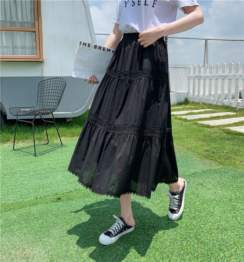 スカート レディース 2色 ロングスカート ティアード レース 裏地付き 切り替え 花柄 ミモレ丈 Aライン ウエストゴム かわいい 大人可愛い きれいめ フェミニン おしゃれ お洒落 おとな ナチュラル キュート ガーリー 学生 通学 デート お出かけ 女子会 旅行 ホワイト ブラック 春 夏 秋 冬 10代 20代 30代 韓国 韓国系 着回し 普段使い 重ね着 体型カバー コーデ 韓国ファッション フレンチファッション キュート ワンサイズ 送料無料