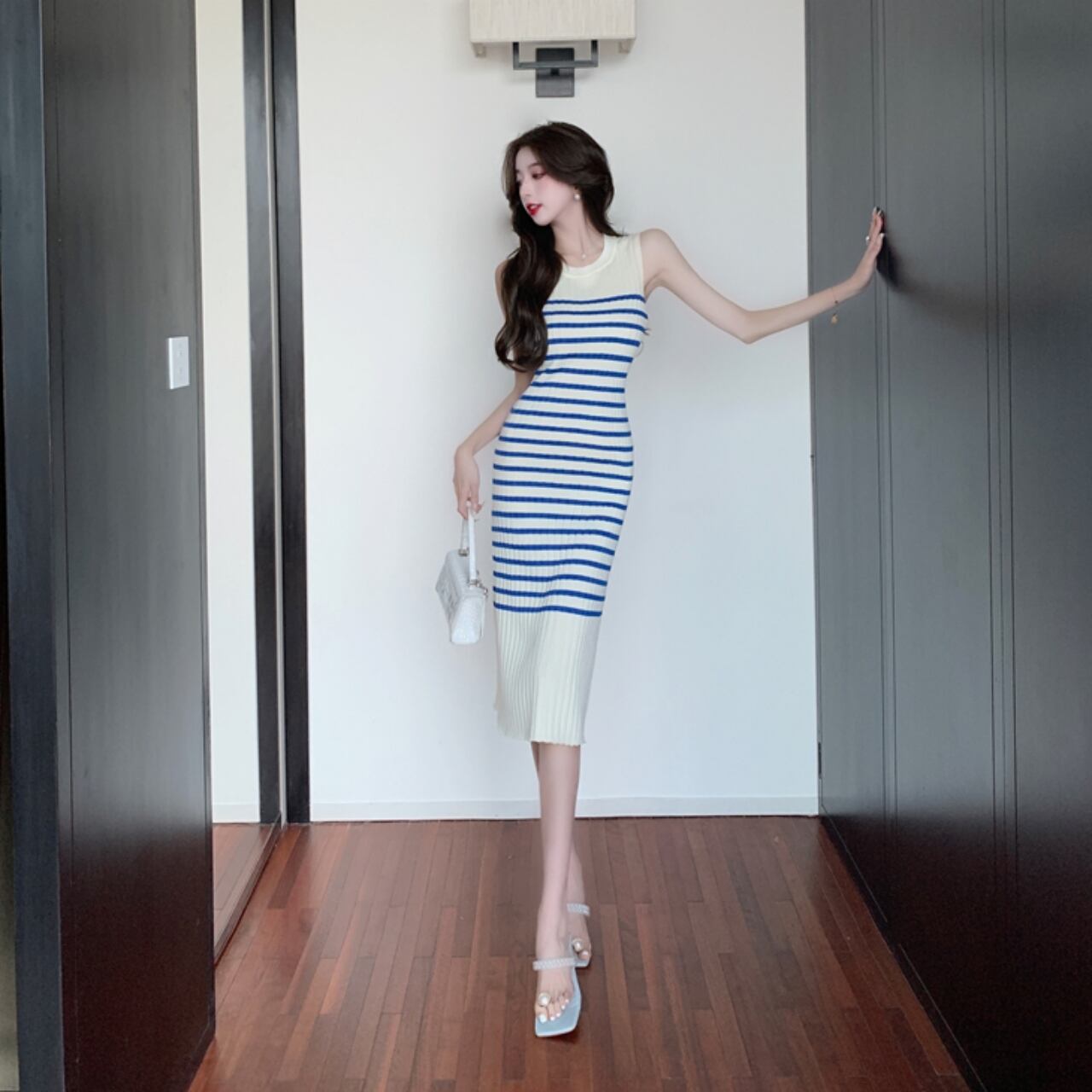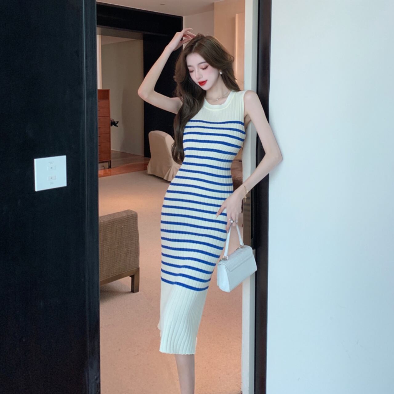 ワンピース レディース ニットワンピース プルオーバー ミモレ丈 ロング丈 ノースリーブ ラウンドネック スリム 細身 ストレート ニット かわいい 大人可愛い きれいめ シンプル カジュアル 大人 上品 おしゃれ 大人女子 個性的 セクシー エレガント S M L ストライプ ボーダー 春 夏 10代 20代 30代 40代 50代 ママ OL OL 通勤 学生 デート お出かけ 女子会 パーティー イベント 普段使い デイリー 着回し 韓国 韓国系 ファッション コーデ スタイル モテ 送料無料